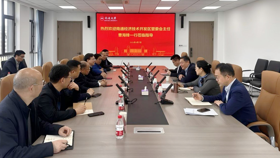 4月7日下午,南通经济技术开发区党工委副书记、管委会主任曹海锋一行来校调研交流。校党委书记杨宇民,校党委常委、副校长施佺出席调研座谈会。