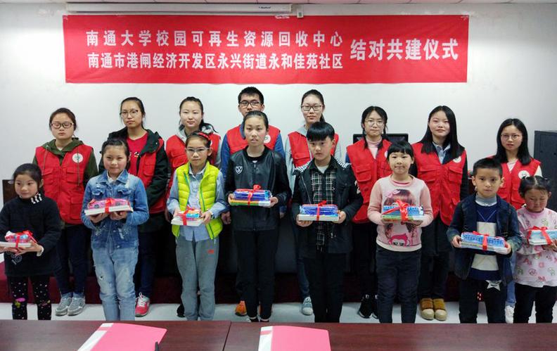 3月31日上午,理学院校园可再生资源回收中心牵手港闸经济开发区永和佳苑社区儿童,开展结对共建暨“情牵困境童,暖春通大行”志愿服务活动,并签订共建协议。理学院校园可再生资源回收中心的志愿者向社区19位贫困家庭子女赠送图书及文具。在欣赏了《最美通大》校情片后,志愿者陪同孩子们参观了郁金香园、图书馆及范曾艺术馆,在一幅幅书画、一排排书架前,孩子们激动与兴奋之情难以言表,郁郁春色映衬着孩子们天真的笑脸,大家共同度过了一个难忘的美好时光。今后,理学院校园可再生资源回收中心将与永和佳苑社区困难家庭子女开展长期帮扶活动,通过这样的活动,培养同学们感恩意识及自强、自立精神。(何佳/文袁艺珏/摄)理学院开展“情牵困境童,暖春通大行”志愿服务活动。
