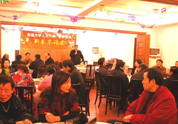 下图为南通大学人大代表、政协委员新春茶话会现场。