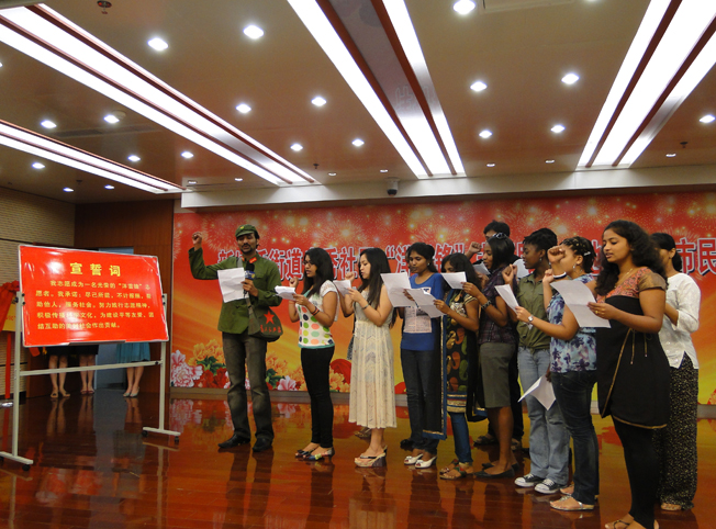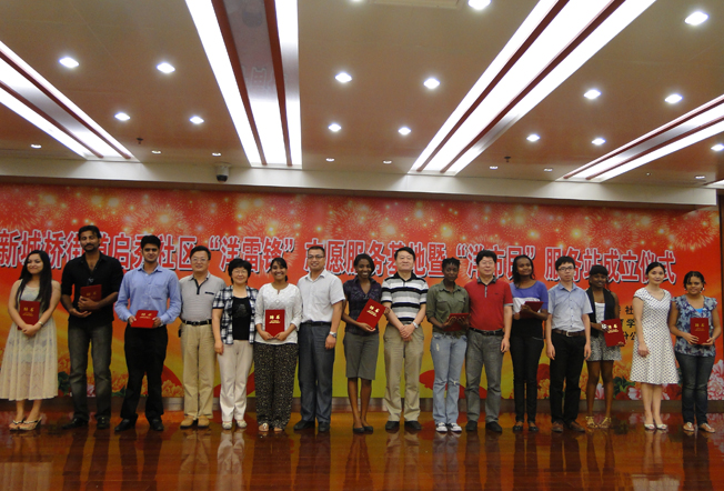 成立仪式上,留学生为成为“洋雷锋”进行了宣誓仪式,并接受了启秀社区颁发的“社区主任助理”的聘书。社区的“洋雷锋”志愿服务基地和“洋市民”志愿服务站,为我校留学生培养良好的思想道德品质,进一步了解社区融入社区和服务社区提供了一个很好的平台。