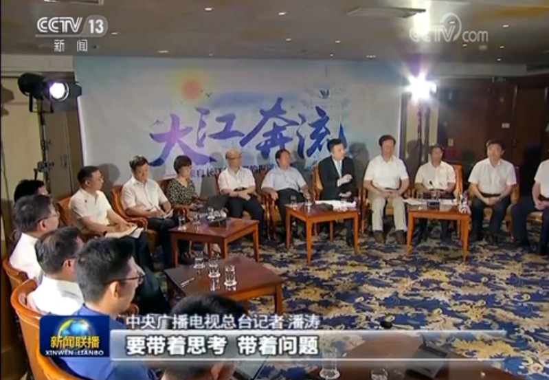 由中宣部组织开展的“大江奔流——来自长江经济带的报道”主题采访活动于7月20日正式启动,中央和长江经济带沿线11个省市新闻单位负责同志及编辑记者,中宣部、国家发展改革委、工业和信息化部、生态环境部、交通运输部、水利部等部委有关负责同志、专家组成采访团,一路沿江而下、水陆结合,将历时20余天,走访长江经济带沿线11个省市,重点挖掘长江经济带沿线地区的经济、文化、历史与环境保护等方面的重要内涵。行程过半,主题采访团成员先后经过了云南、贵州、四川、重庆、湖北、湖南。此次《夜话长江》访谈活动围绕宣传贯彻习近平总书记在深入推动长江经济带发展座谈会上的重要讲话精神,紧扣坚持生态优先、绿色发展主题,采访团成员围炉夜话,谈见闻、说感受,讲问题、找对策,为下半程的采访报道提供足够的思考养料。访谈从“生态更优美、交通更顺畅、经济更协调、市场更统一和机制更科学”五个方面深入剖析了长江经济带发展的现状、问题与对策。