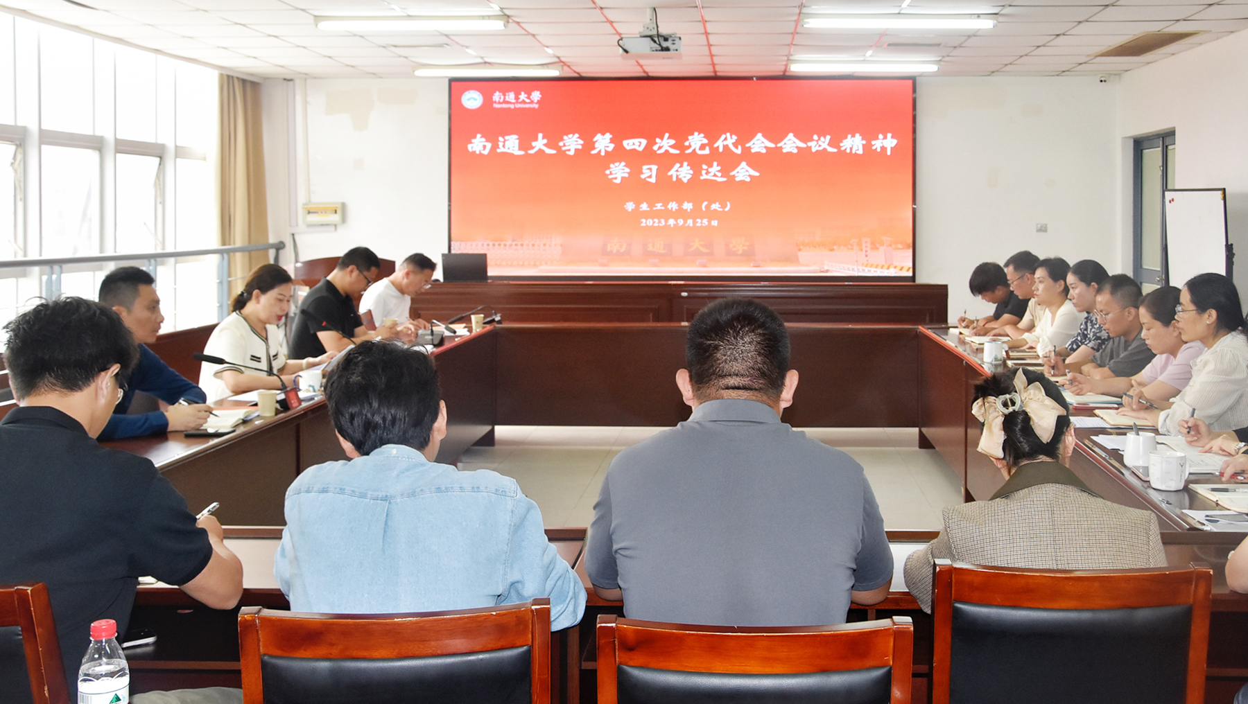 会上,学生工作部部长张雪松带领大家全面回顾了本次大会各项议程,传达学习了校党委书记尚庆飞题为《凝心聚力 勇毅前行 为全面建设特色鲜明的国内一流大学而努力奋斗》的党代会工作报告以及尚庆飞在大会闭幕式和中共南通大学第四届委员会第一次全体会议上的讲话精神。学生工作部副部长王夏强传达学习了纪委工作报告和中共南通大学第四届纪律检查委员会第一次全体会议精神。