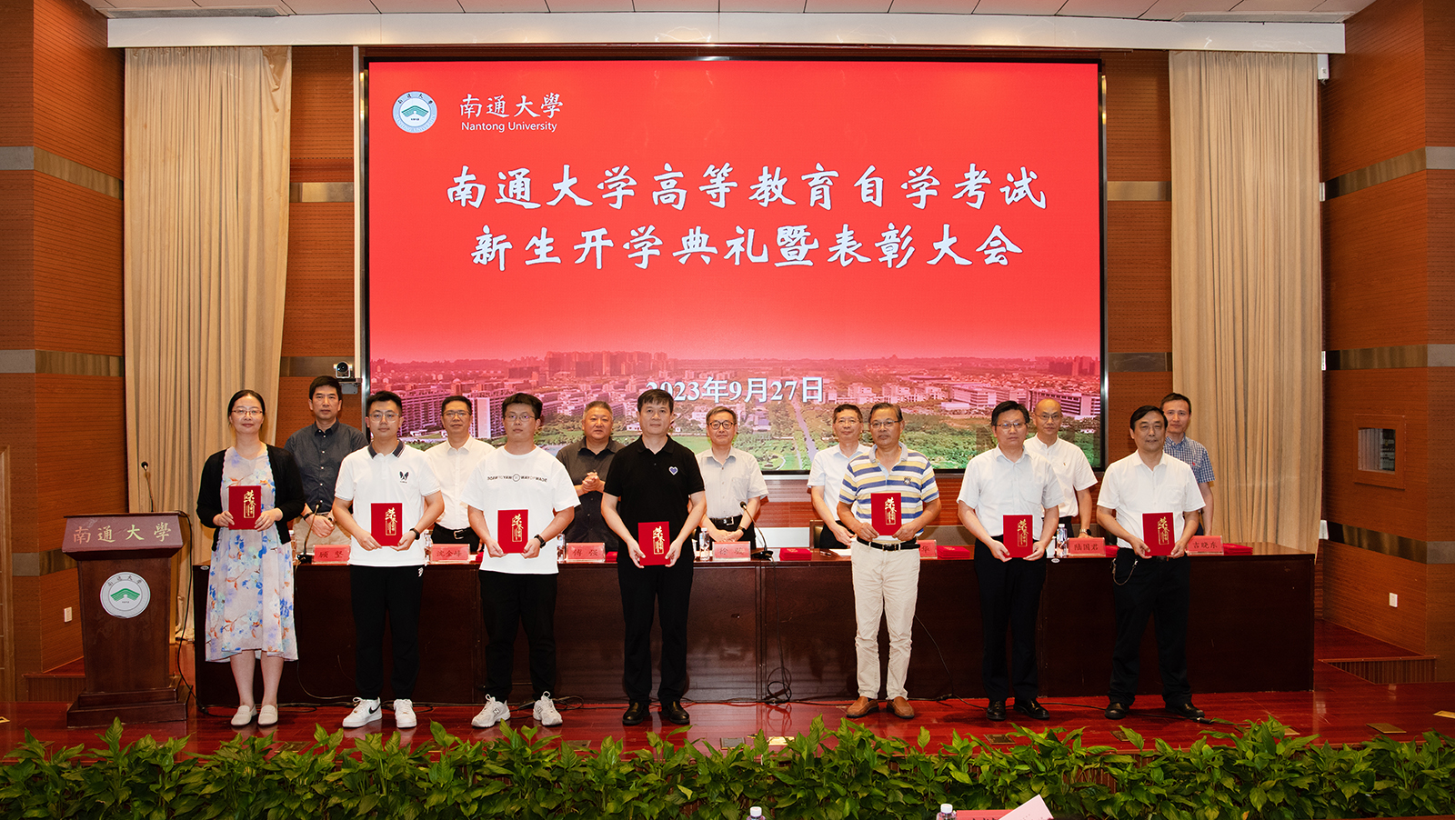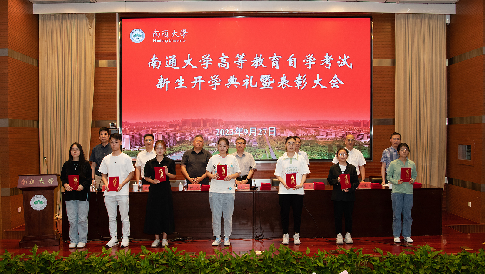 继续教育学院原院长张华宣读了《南通大学2022-2023学年度自学考试三好学生、优秀学生干部、优秀奖学金、励志奖学金、特等奖教金、优秀奖教金的表彰决定》。与会领导为受表彰的师生代表颁发证书。