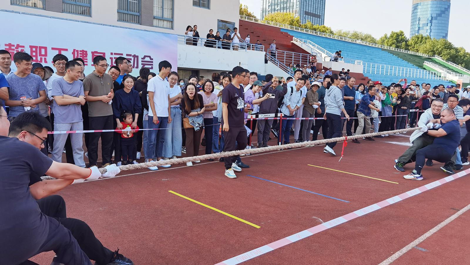 集体项目拔河共有21支队伍参加。赛场上,运动员个个精神抖擞、斗志昂扬。随着裁判的哨响,绳上的红色标记在两队中线间来回移动。场下,欢呼声、呐喊声、加油鼓劲声此起彼伏,响彻云霄,将赛场气氛推向了高潮。经过激烈角逐,体育科学学院分工会脱颖而出,夺得第一名,后勤分工会获得第二名,机械工程学院分工会获得第三名。