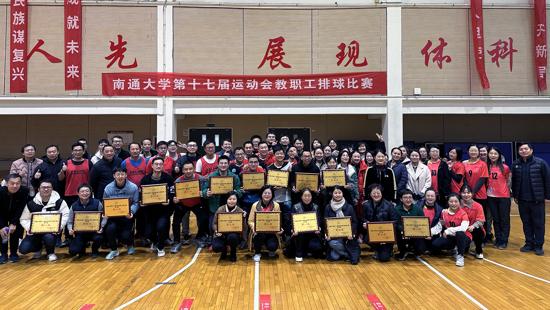 12月4日下午,我校第十七届运动会教职工排球比赛在啬园校区体育教学训练馆落下帷幕。经过激烈角逐,机关分工会和机械工程学院代表队分获男、女组冠军。