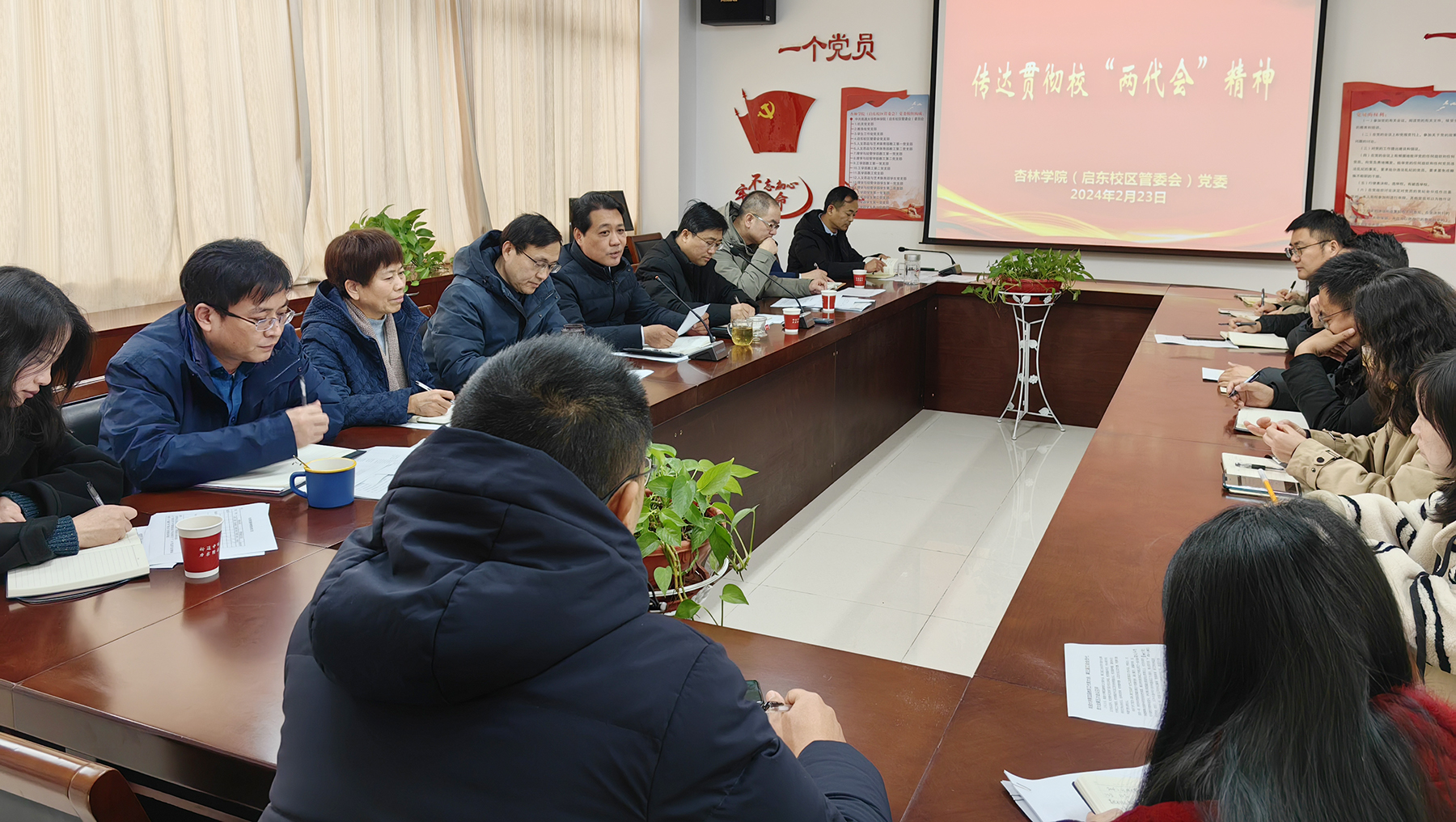 2月23日下午,杏林学院(启东校区管委会)党委召开专题会议传达贯彻校“两代会”会议精神。