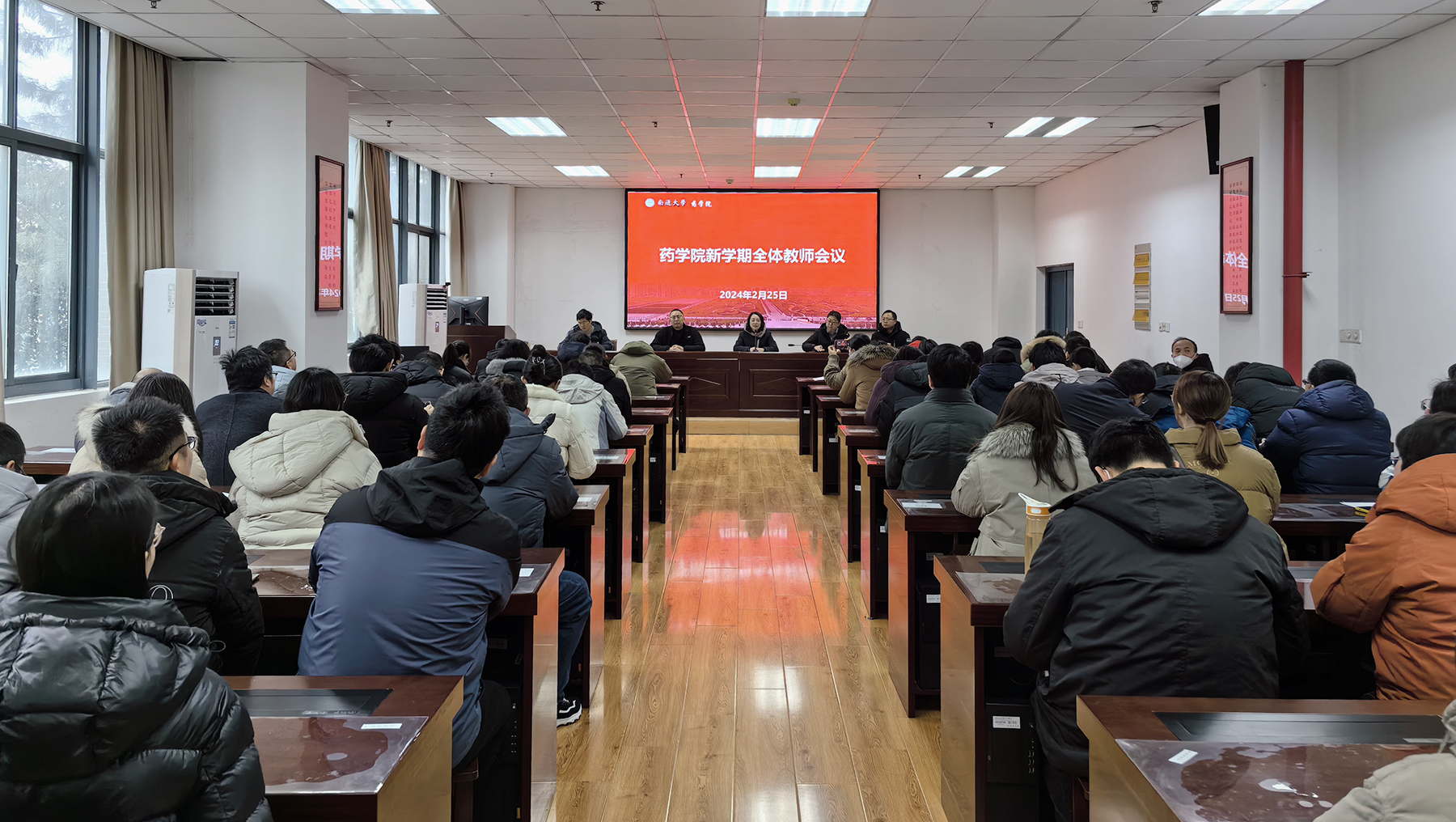 2月25日,药学院召开新学期全体教师会议,学习传达校第四届教职工代表大会、第三届工会会员代表大会第五次会议精神,部署新学期工作。