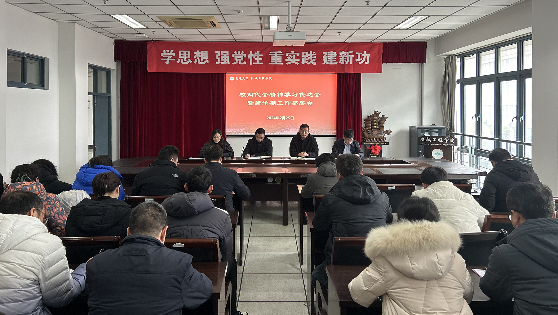 2月25日下午,机械工程学院召开新学期教职工大会,传达学习校第四届教职工代表大会、第三届工会会员代表大会第五次会议精神,安排部署新学期工作。