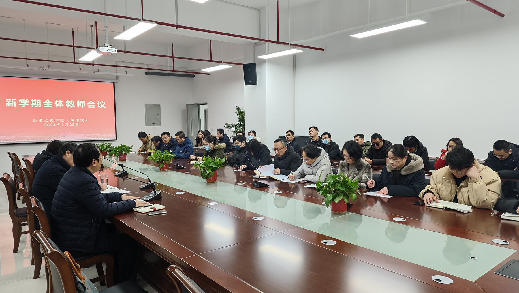 2月25日下午,历史文化学院(法学院)召开新学期全体教师会议,学习贯彻校第四届教职工代表大会、第三届工会会员代表大会第五次会议精神,部署新学期重点工作。