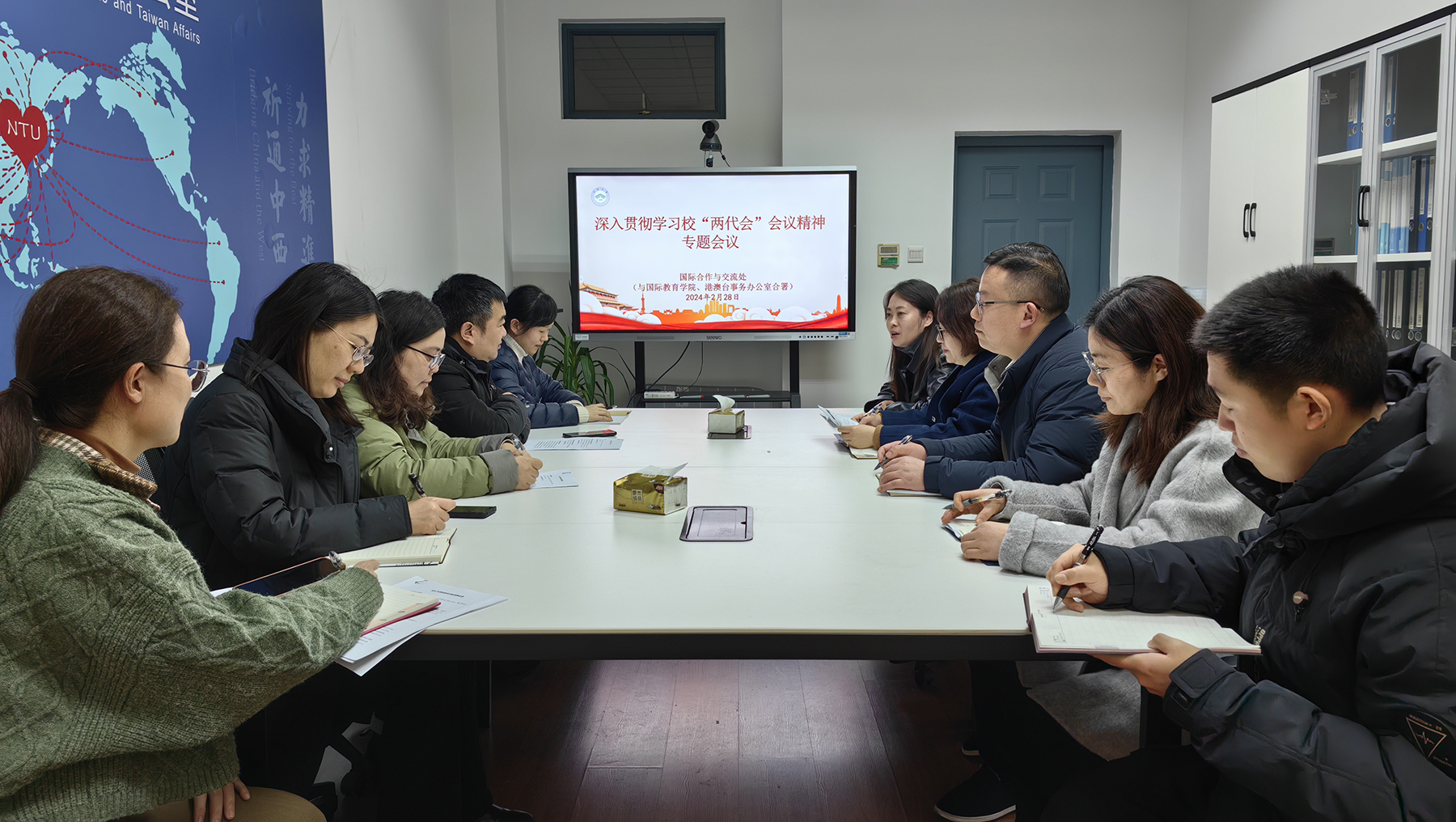 2月28日下午,国际合作与交流处(与国际教育学院、港澳台事务办公室合署)召开全体人员会议,传达学习学校第四届教职工代表大会、第三届工会会员代表大会第五次会议精神,部署新学期重点工作。