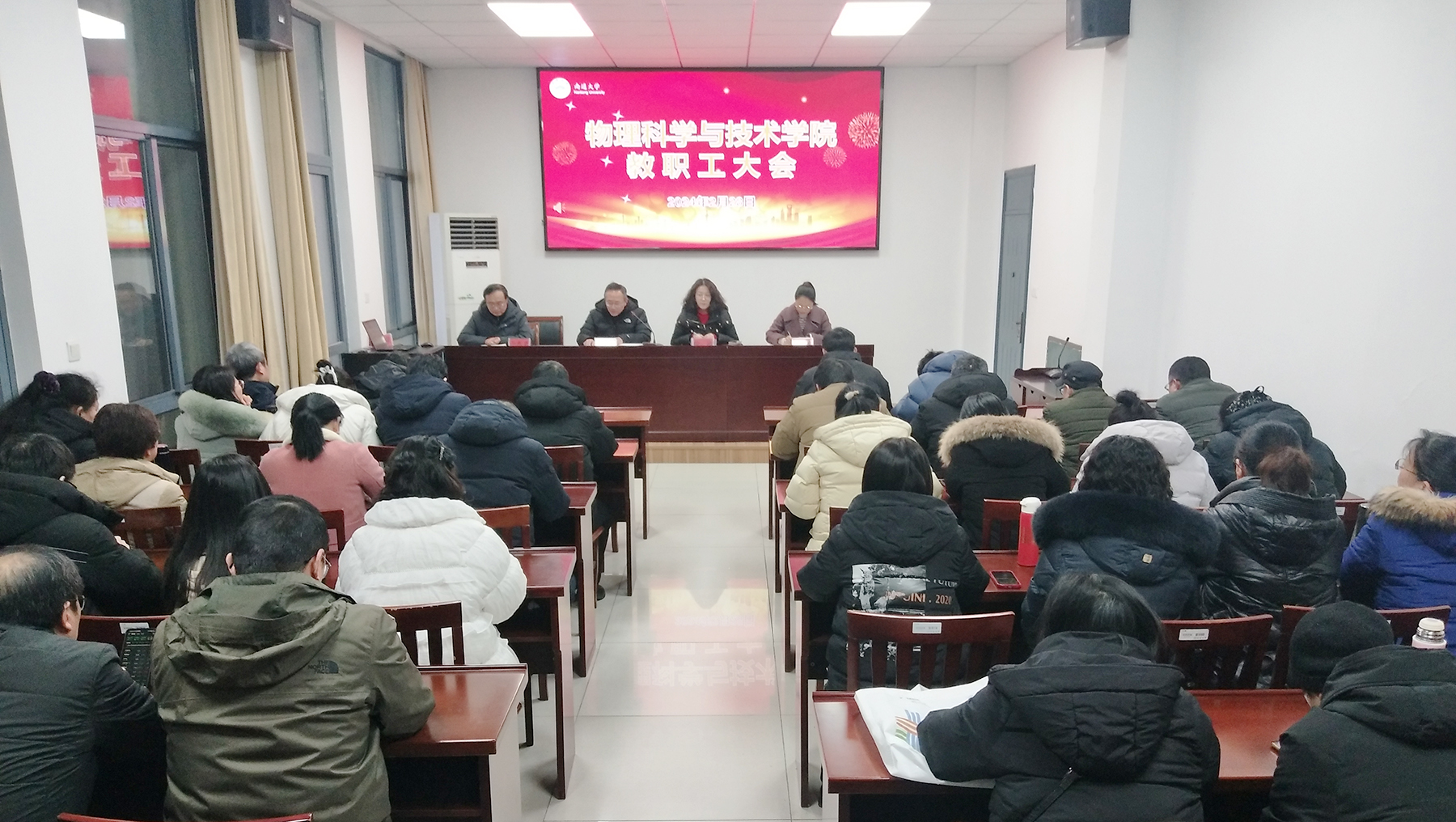 2月28日下午,物理科学与技术学院召开新学期全体教职工大会,传达贯彻学校第四届教职工代表大会暨第三届工会会员代表大会第五次会议精神,部署新学期重点工作。