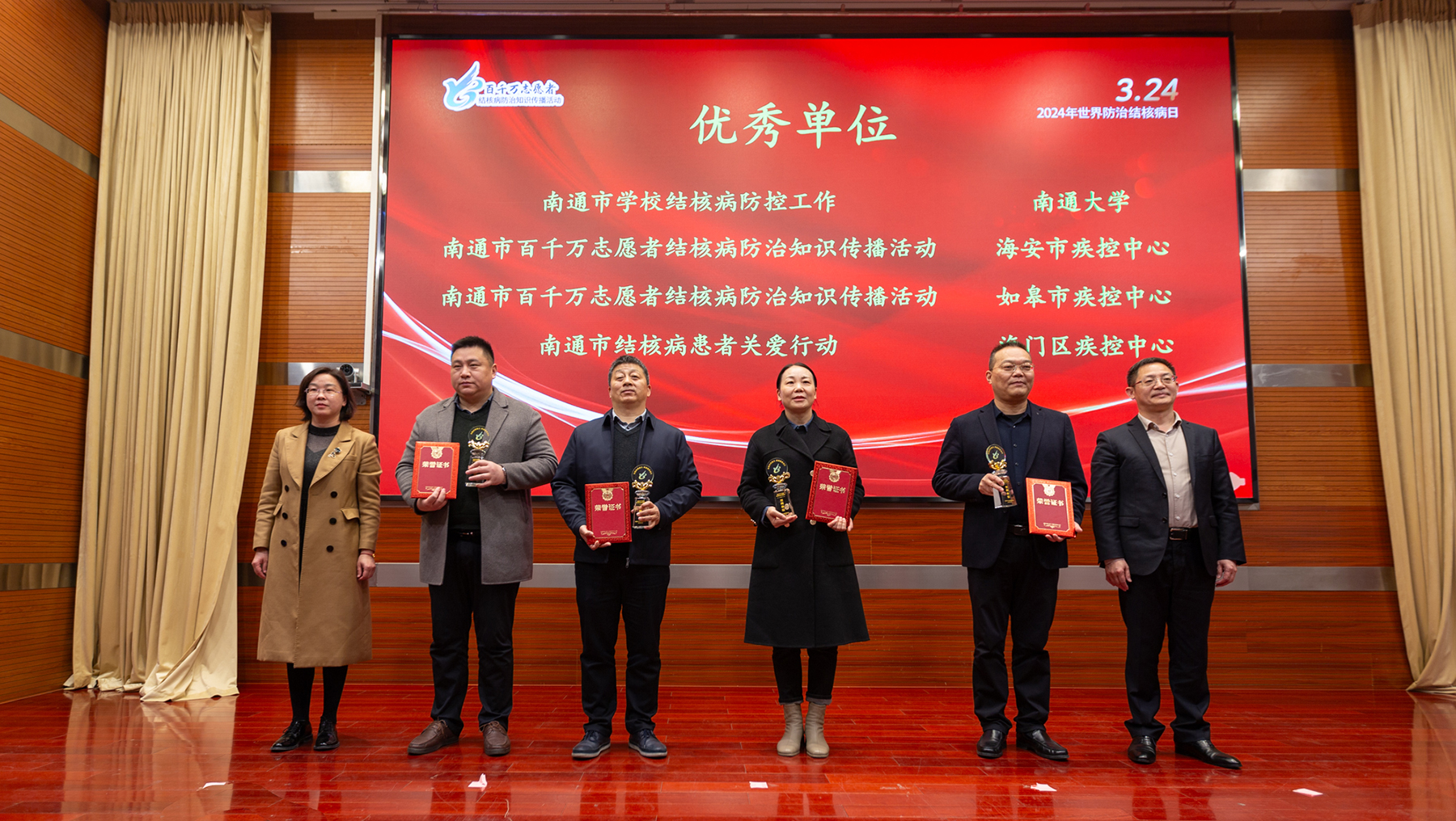 3月22日,南通市“3.24世界防治结核病日”宣传暨“百千万志愿者结核病防治知识传播”活动在我校举行。校党委副书记王卫东出席活动并致辞。南通市疾病预防控制局局长,南通市卫健委副主任、党组成员吴徐明出席活动,并为“南通市学校结核病防控工作优秀单位”颁发奖杯和荣誉证书。