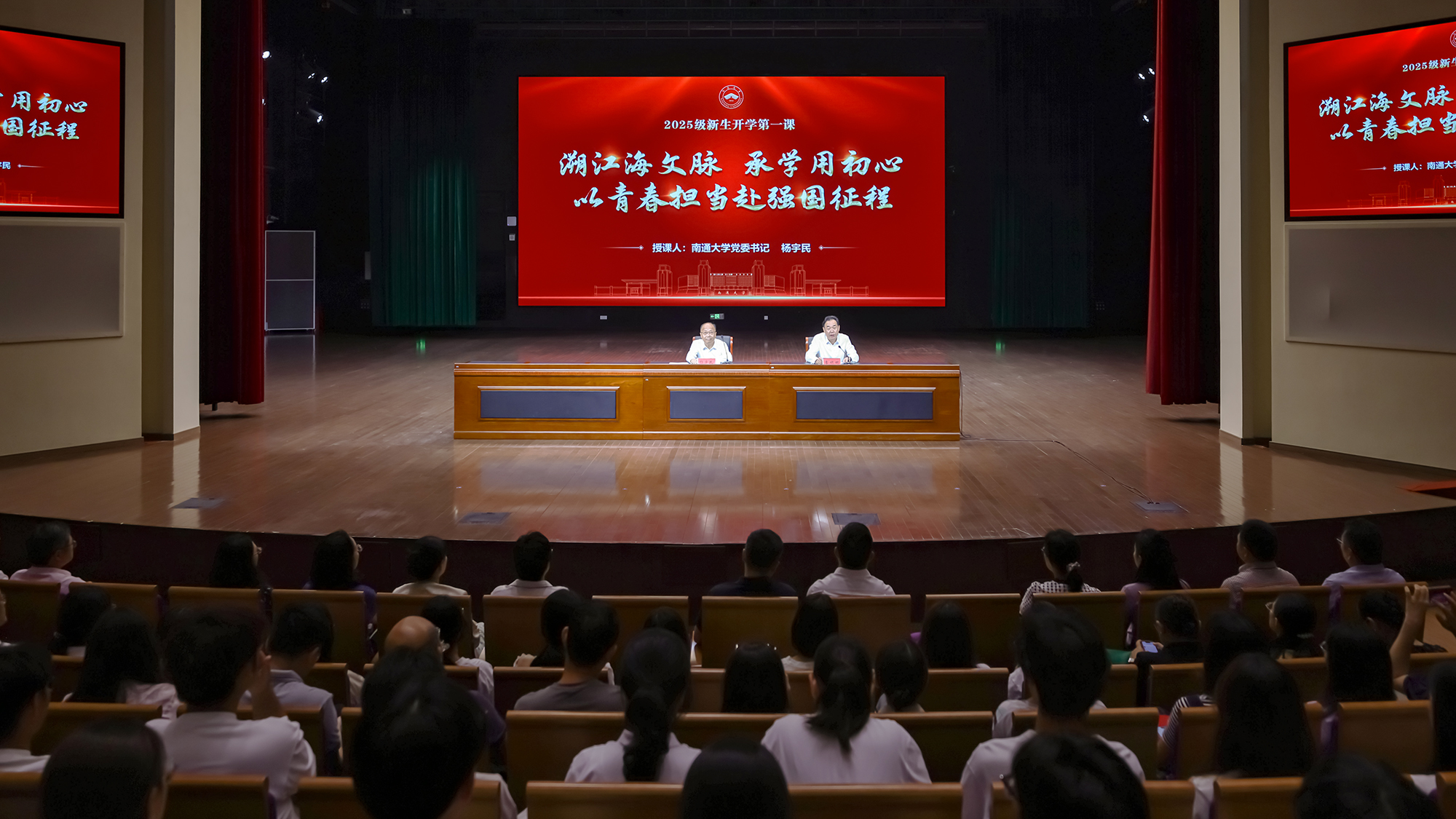 吉明明指出,校党委书记为新生上“开学第一课”,是我校全面落实新时代立德树人根本任务的重要举措,旨在把牢社会主义办学方向,培养青年学生的政治认同、家国情怀、文化素质和道德修养。他希望“新通大人”带着“开学第一课”的收获与思考,在通大积蓄能量、锤炼本领,真正把“通大精神”内化于心、外化于行,成长为有理想、敢担当、能吃苦、肯奋斗的新时代好青年,以青春之我、奋斗之我,奔赴强国征程,书写无愧于时代、无愧于人民的青春华章。