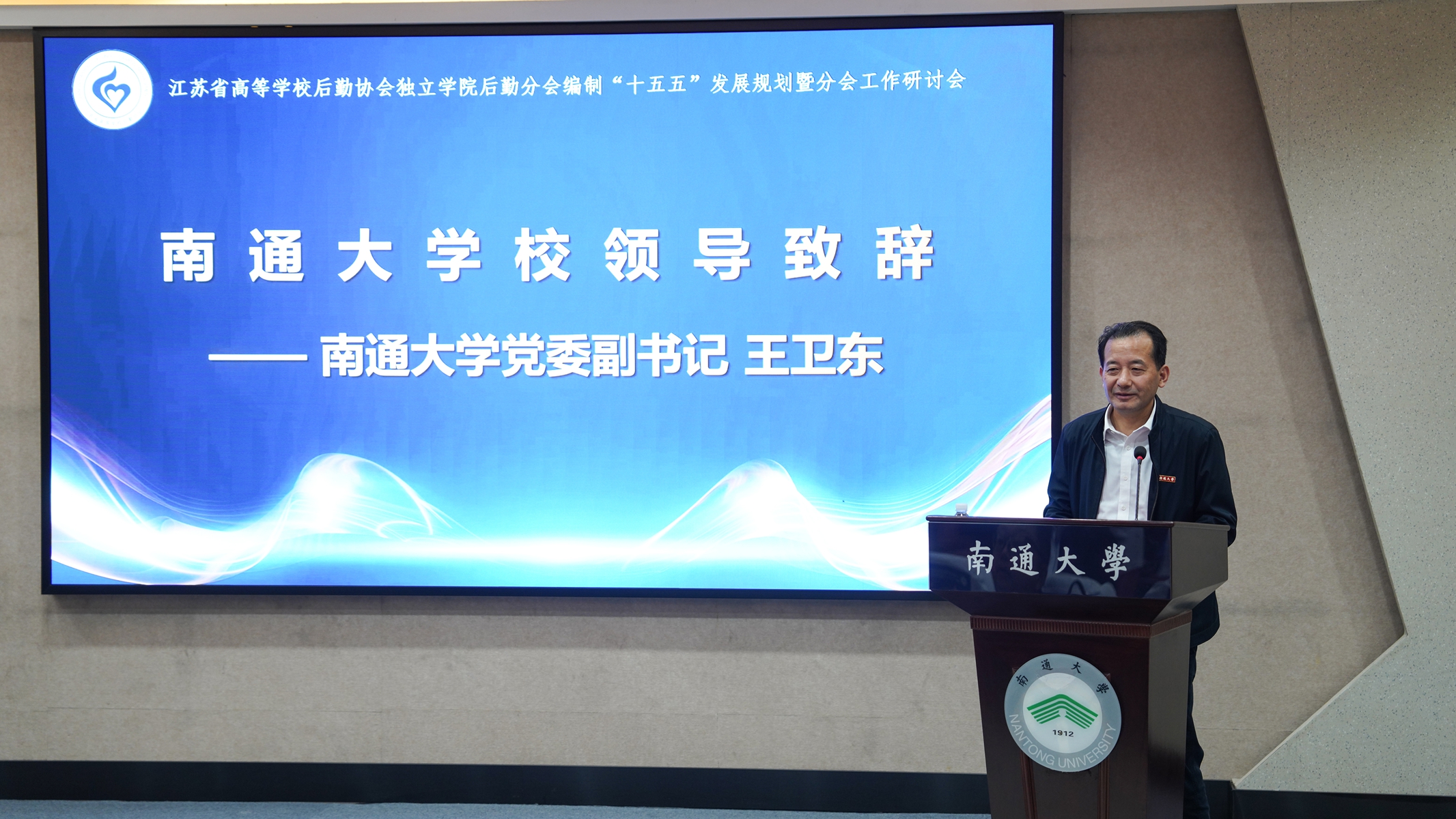 王卫东代表南通大学及南通大学杏林学院对与会嘉宾表示热烈欢迎,他指出,新时期独立学院后勤服务正面临需求升级与模式变革的双重机遇,期望通过本次研讨实现经验共享、智慧聚合,为“十五五”规划注入新思路,为江苏独立学院后勤事业发展凝聚合力。