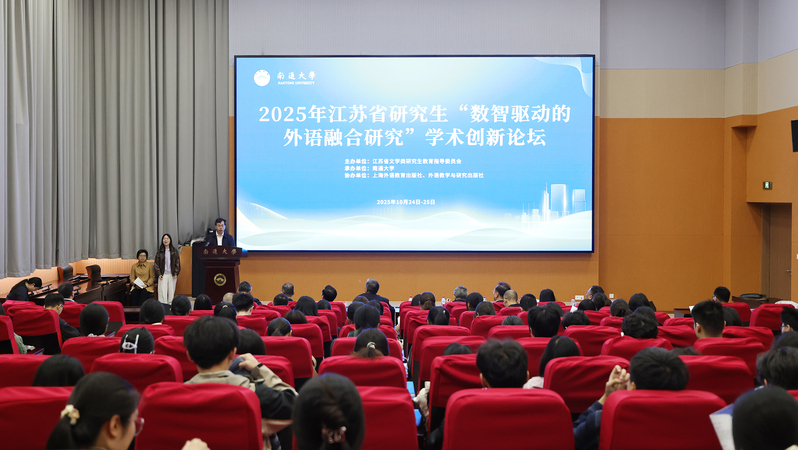 10月25日,2025年江苏省研究生“数智驱动的外语融合研究”学术创新论坛在我校举办。校党委常委、副校长、研究生院院长施佺,江苏省文学类研究生教指委委员、苏州大学朱新福教授在开幕式上致辞。