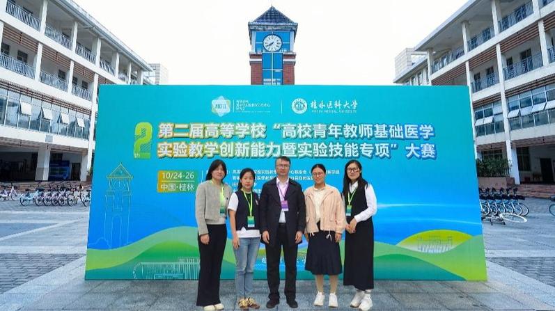 10月24日—26日,第二届高等学校青年教师基础医学实验教学创新能力暨实验技能专项大赛在广西桂林举办。我校医学院教师在比赛中获得一金一铜。