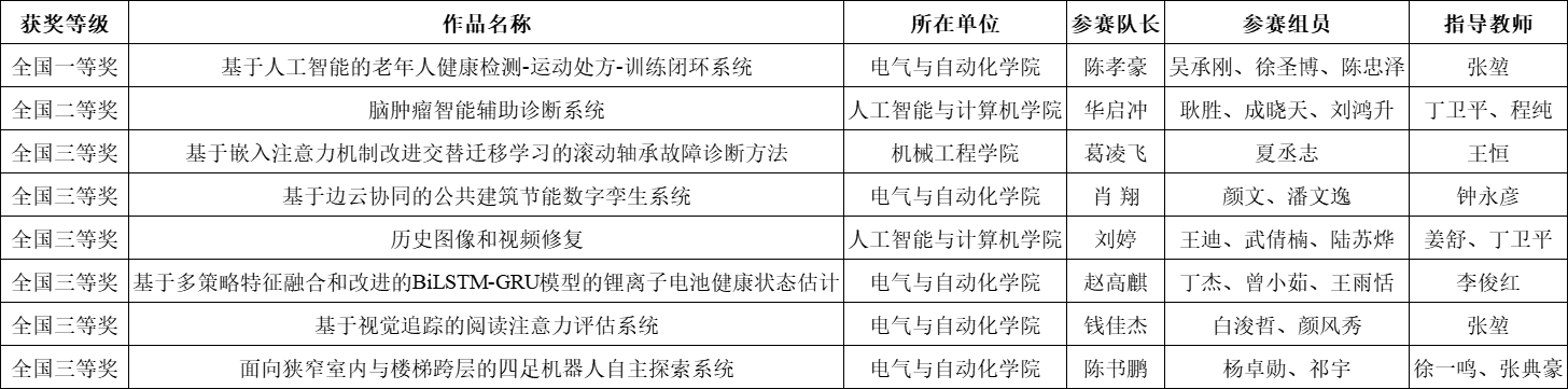 近日,“华为杯”第七届中国研究生人工智能创新大赛全国总决赛在山东青岛举行。我校电气与自动化学院陈孝豪等同学完成的“基于人工智能的老年人健康检测—运动处方—训练闭环系统”项目荣获全国一等奖,并进入冠军争夺赛跻身全国十强,实现我校研究生在该项赛事新的突破。此外,我校还斩获全国二等奖1项、三等奖6项,我校获评优秀组织单位奖,电气与自动化学院张堃教授获评“优秀指导教师”。