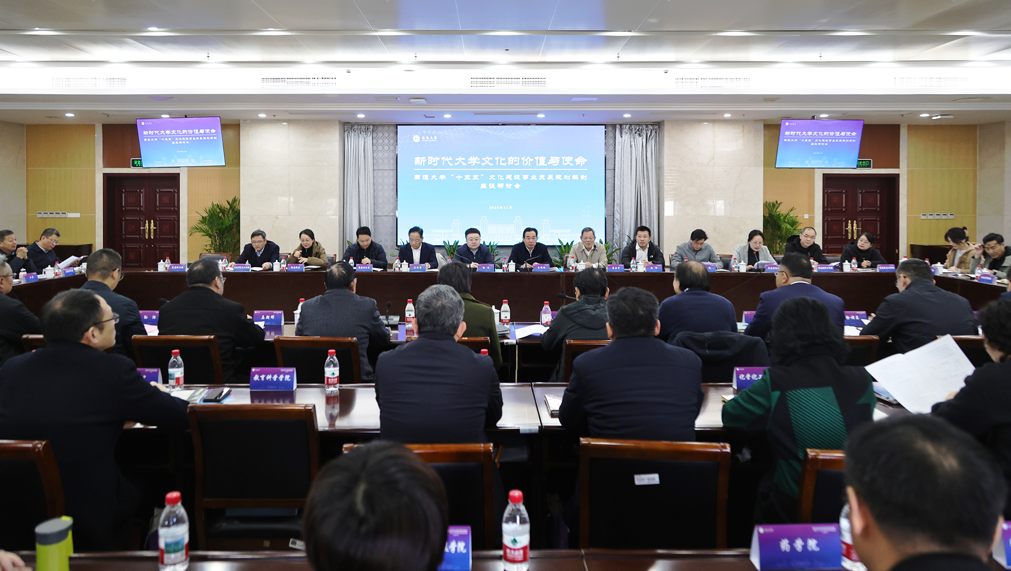 吉明明在讲话中指出,大学是文化传承的重要载体,也是文化创新的重要场所。科学编制“十五五”文化建设事业发展规划,推动文化事业高质量发展,是贯彻落实党的二十届四中全会精神的重要举措,对于建设特色鲜明的国内一流大学具有重要而深远的意义。就“十五五”时期文化建设工作,吉明明代表学校党委提出三点要求。一是坚持价值引领,坚定文化自信,坚守高校文化发展方向。必须坚持不懈以习近平新时代中国特色社会主义思想为指导,认真学习领会党的二十届四中全会精神,自觉贯彻落实到编制“十五五”文化建设事业发展规划和宣传思想文化工作各方面、全过程。二是围绕重点任务,强化分解落实,科学编制“十五五”文化事业发展规划。要把聚焦学校“十五五”文化建设事业发展规划中心任务、研究学校发展现状,作为深入贯彻党的二十届四中全会精神的重要举措。要聚焦“名城名校”融合发展战略,深化与地方文化资源共建共享,加大江海文化、张謇研究等地方特色文化的研究,着力提升文化赋能校地融合发展的层次和水平。三是秉持守正包容,厚植文化创新,汇聚文化育人合力。要以编制学校“十五五”文化建设事业发展规划为契机,把立德树人贯穿始终,站牢文化育人前沿阵地,坚持以文弘业、以文培元、以文立心、以文铸魂,争做新时代的坚定信仰者、有力传播者、忠实践行者。要加快培养勇担责任使命的宣传思想文化工作队伍,进一步完善大学文化建设工作机制,奋力开创新时代通大宣传思想文化工作新局面。