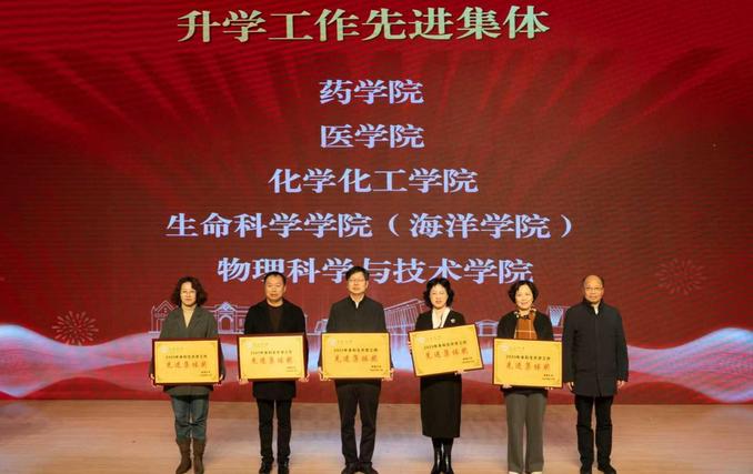 会上,校党委常委、副校长吉明明宣读了《关于表彰2025年升学先进集体和先进个人的决定》。药学院等5个学院被授予“升学工作先进集体”荣誉称号,公共卫生学院等6个学院被授予“升学工作达标集体”荣誉称号,医学院等18个学院被授予“升学工作进步集体”荣誉称号,药学院等12个学院被授予“升学工作单项先进集体”荣誉称号,21名辅导员被评为“升学工作先进个人”。