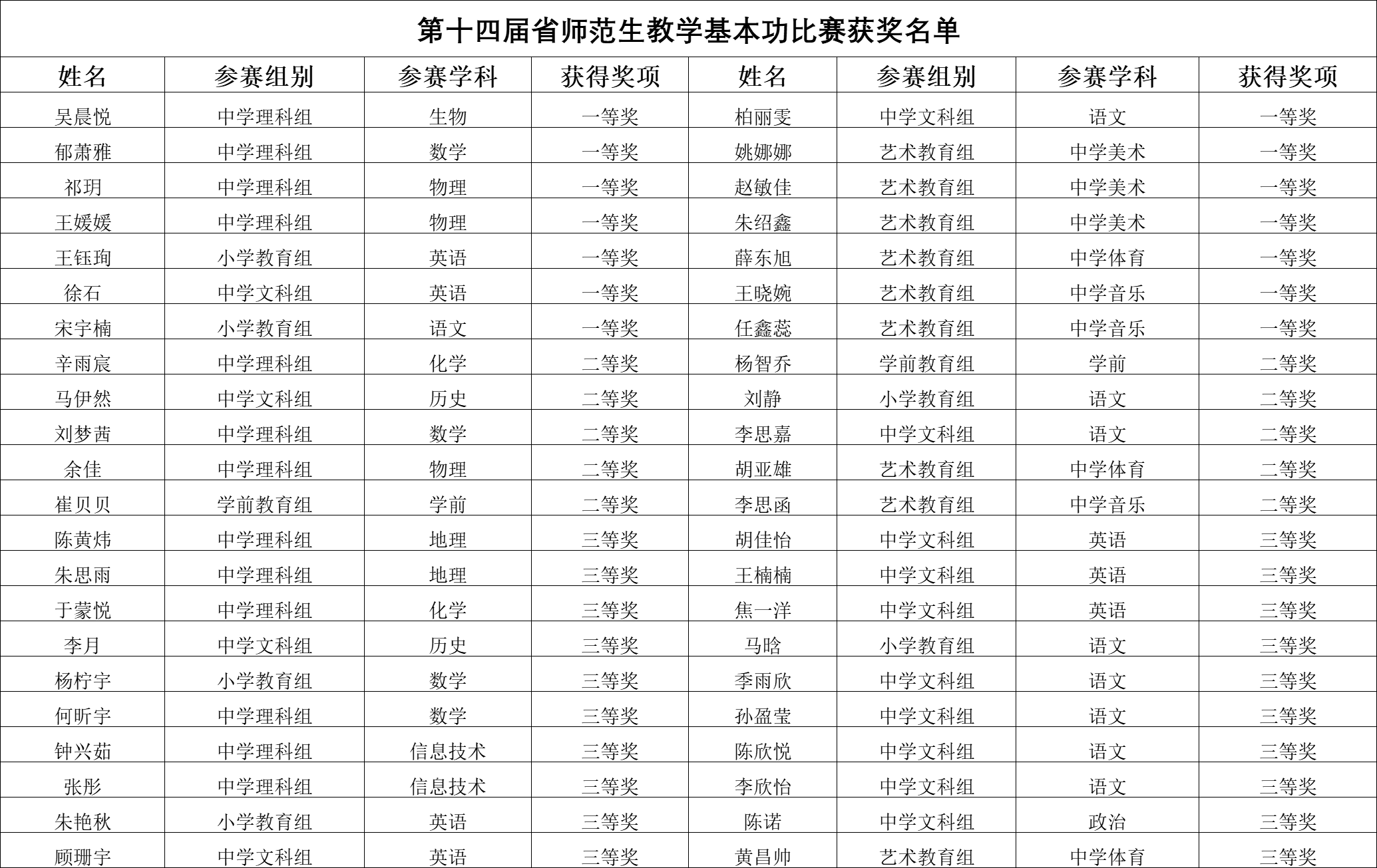 近日,江苏省第十四届师范生教学基本功大赛落下帷幕。我校60名参赛学生中有44人获奖,其中一等奖14人、二等奖10人、三等奖20人,一等奖获奖人数创下历史新高,充分展现了我校师范生扎实的专业素养和教学能力。