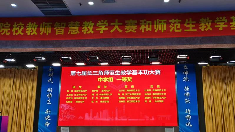 在江苏省赛中脱颖而出的优秀选手,迎来了更广阔的舞台。我校4名选手受省教育厅推荐参加由安徽省教育厅、上海市教育委员会、浙江省教育厅、江苏省教育厅联合主办,长三角教师教育联盟协办的第七届长三角师范生教学基本功大赛。文学院柏丽雯同学凭借出色的表现脱颖而出,一举摘得同组别一等奖桂冠,其他3名选手也分获同组别三等奖,再次为我校赢得了荣誉。