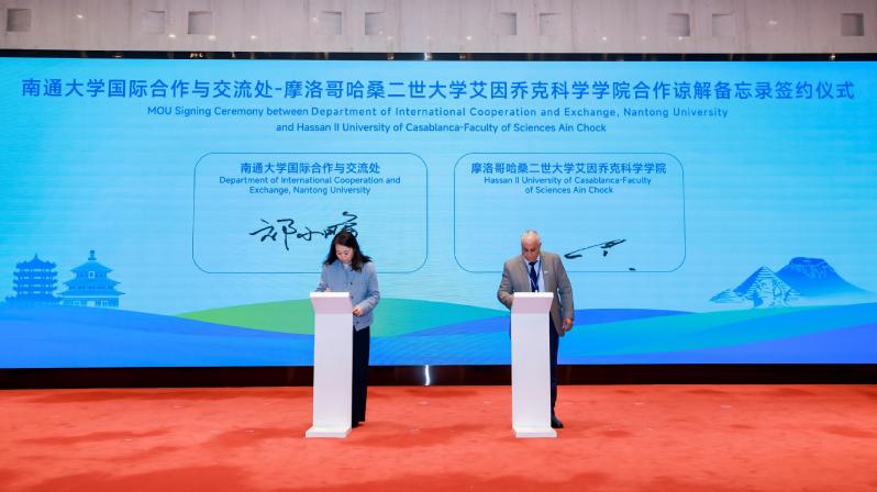 此次会议以“数智时代中非高等教育人才培养与科研合作”为主题,旨在推动中非教育科技合作与知识共享,充分发挥科技创新对中非经济社会可持续发展的支撑和引领作用。会上,国际合作与交流处处长祁小峰代表学校参加中北非国际教育创新联盟理事单位授牌仪式,并与摩洛哥哈桑二世大学艾因乔克科学学院院长SOUKRI ABDELAZIZ教授分别代表两校签署合作备忘录。