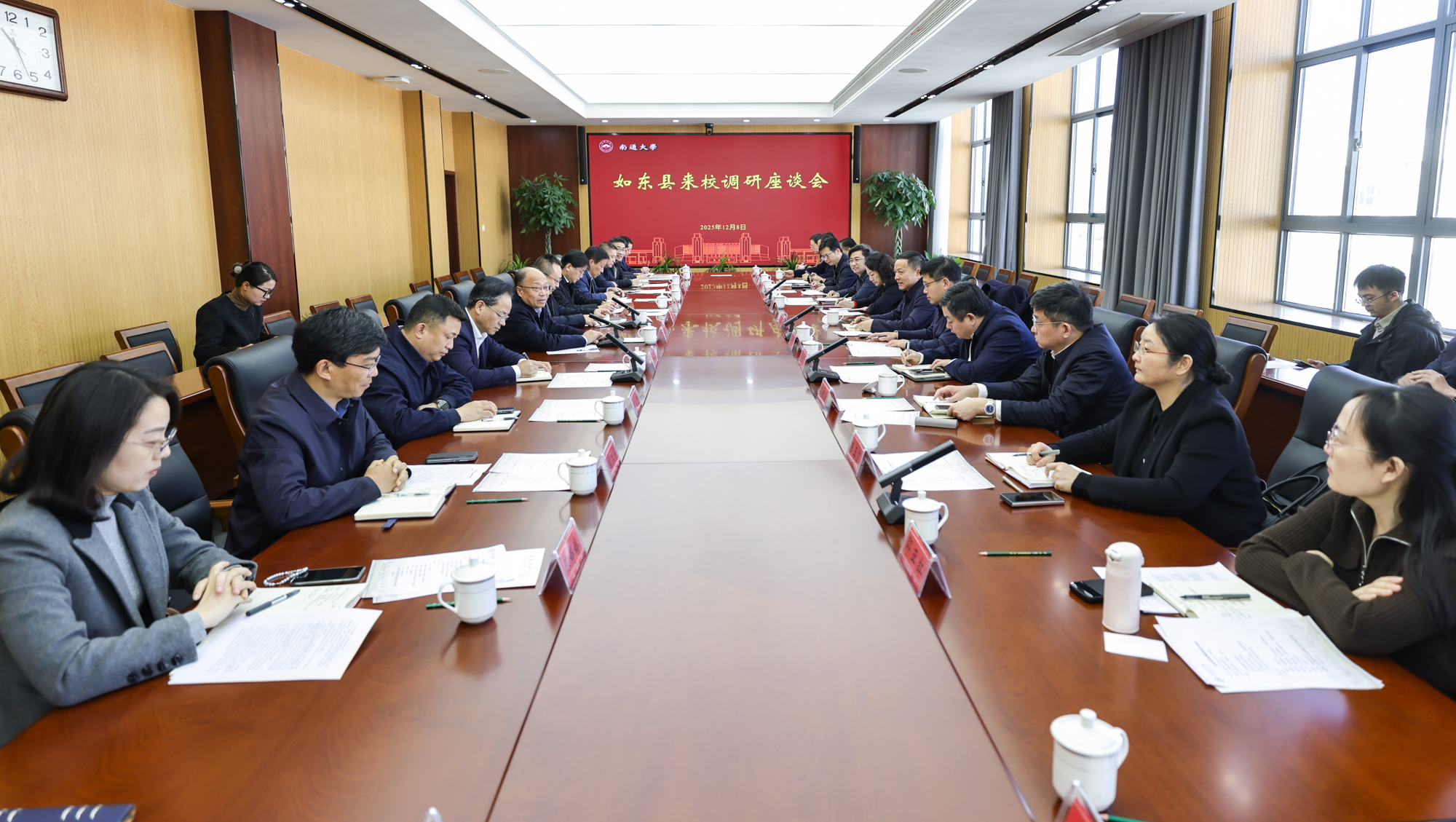 如东县相关部门负责人,我校办公室、教务处、科学技术处、服务地方工作处、人力资源部、学生工作处、发展规划处、化学化工学院、人工智能与计算机学院和海洋研究院等相关负责人参加交流。