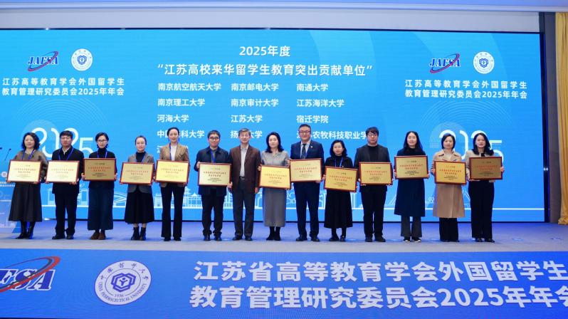 2025年12月29日—31日,由江苏省教育厅指导、江苏省高等教育学会外国留学生教育管理研究委员会主办的2025年度江苏省外国留学生教育管理研究会年会在南京举行。我校荣获2025年“江苏高校来华留学生教育突出贡献奖”,全省共13所高校获此殊荣。