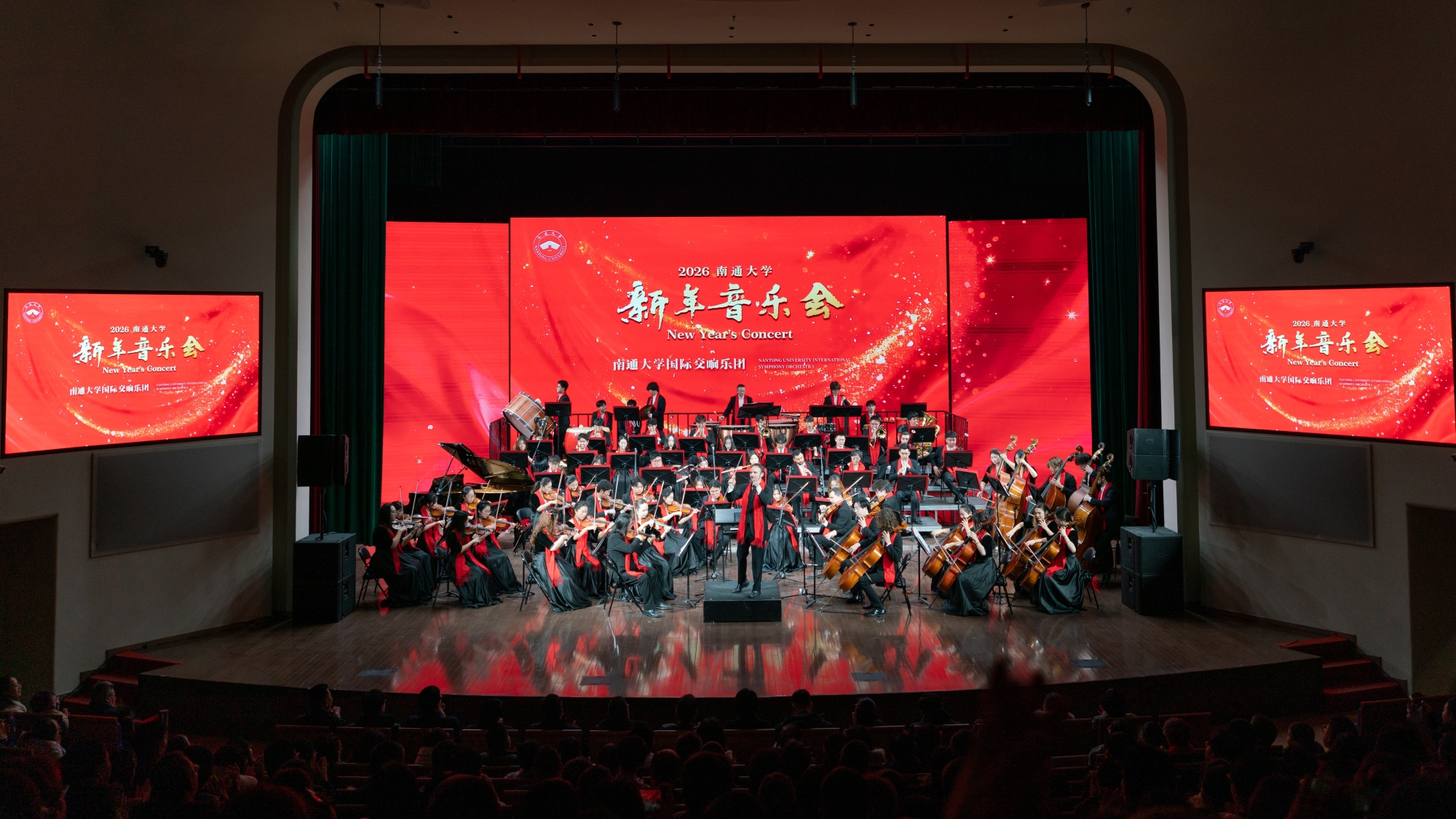 1月3日,2026南通大学新年音乐会在学校艺术中心剧场上演。南通市委常委、统战部部长王小红,副市长彭大刚、于立忠、杨广学,政协副主席、市委副秘书长任新峰,校党委书记杨宇民、校长王建浦以及全体在通校领导出席音乐会。