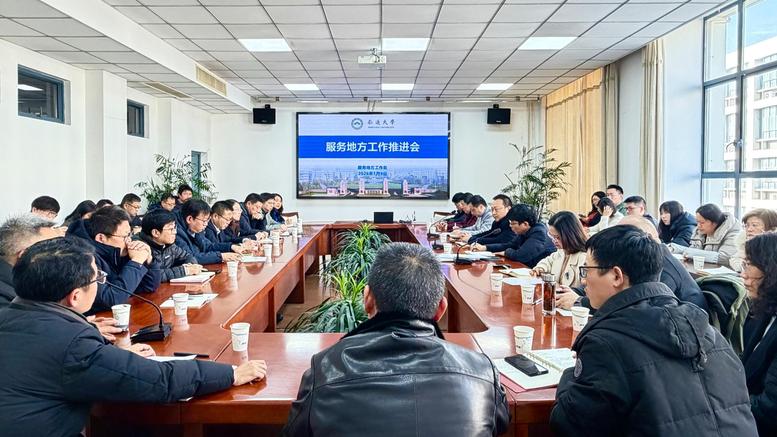 会上,服务地方工作处处长高江宁汇报了2025年度服务地方工作进展与主要成效,重点阐述了2026年度工作思路和主要任务。“双高协同”发展研究院院长、服务地方工作处副处长姚娟作“双高协同”试点工作专题汇报。电气与自动化学院、纺织服装学院、医学院、艺术学院等单位负责同志分别就优化科研组织模式、推进概念验证中心建设、加强高价值专利培育转化、深化校企协同等主题作交流发言。