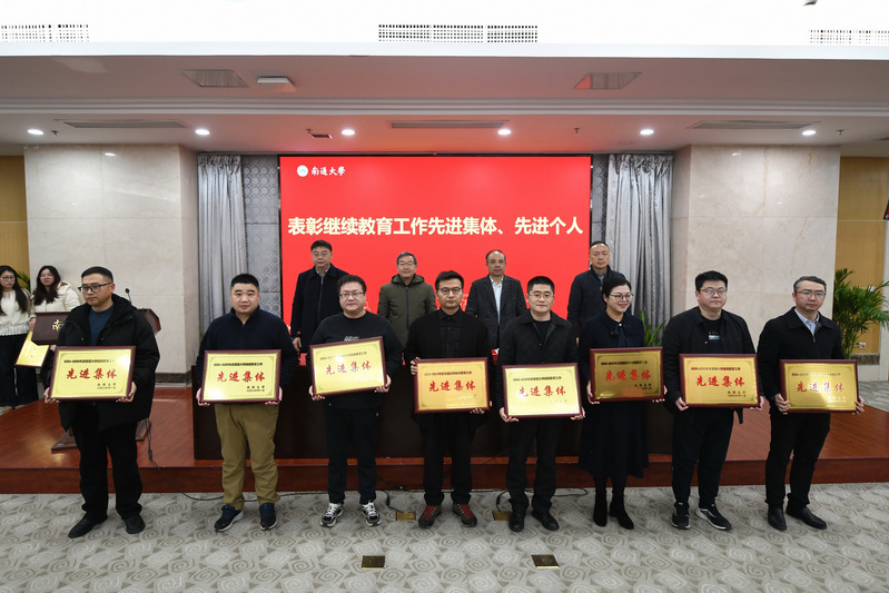 会上宣读了《关于表彰 2024-2025 年度继续教育工作先进集体和先进个人的决定》。与会领导为受表彰的先进集体与先进个人颁发荣誉证书。教育科学学院党委书记曹阳、常州复创教育培训中心负责人羊智洪作为先进集体代表,医学院副院长吴辉群作为先进个人代表,先后在会上作交流发言,分享工作经验与心得。