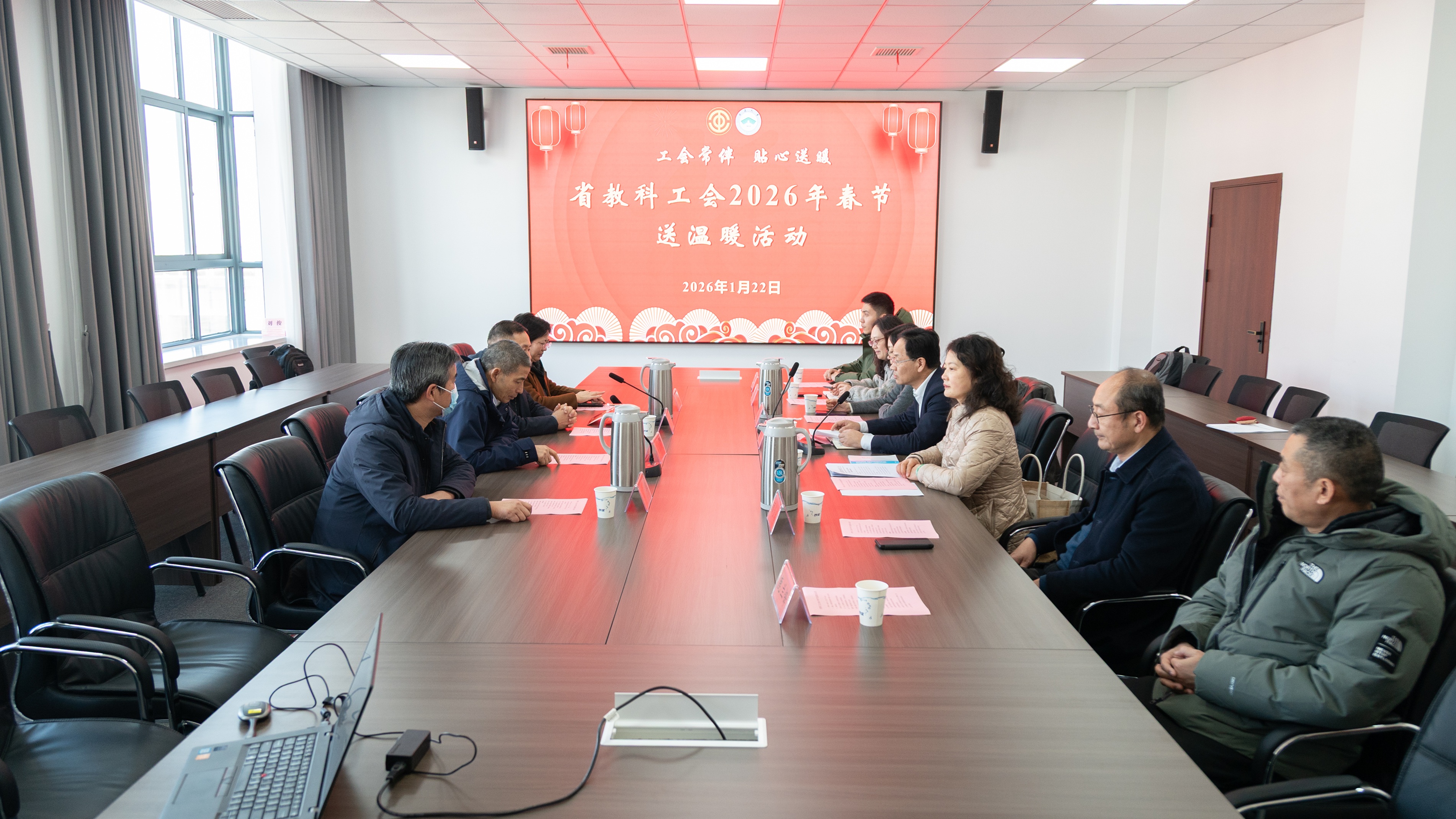 1月22日下午,省教科工会科研院所部部长吴宝城、高校部部长孙剑一行来校开展春节送温暖活动,看望我校先进模范人物、在重点工程和重大科技项目中作出突出贡献的教职工,以及患病仍坚守岗位的一线教职工。南通市教育局副局长、党组成员张华,南通市教育工会主席周淑平陪同慰问。校党委常委、组织部部长吴如高出席活动并致辞。