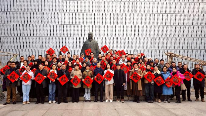 为增添节日喜庆氛围,会议安排了艺术迎春环节。艺术家们赠送了精心创作的“福”字作品,笔墨承载祝福,艺术传递温情。与会人员手持“福”字合影留念,现场暖意融融,洋溢着浓厚的迎春气息。与会人员还共同参观了我校美术馆新年特展“艺术南通:‘地球的箴言——国际环保艺术展’”。