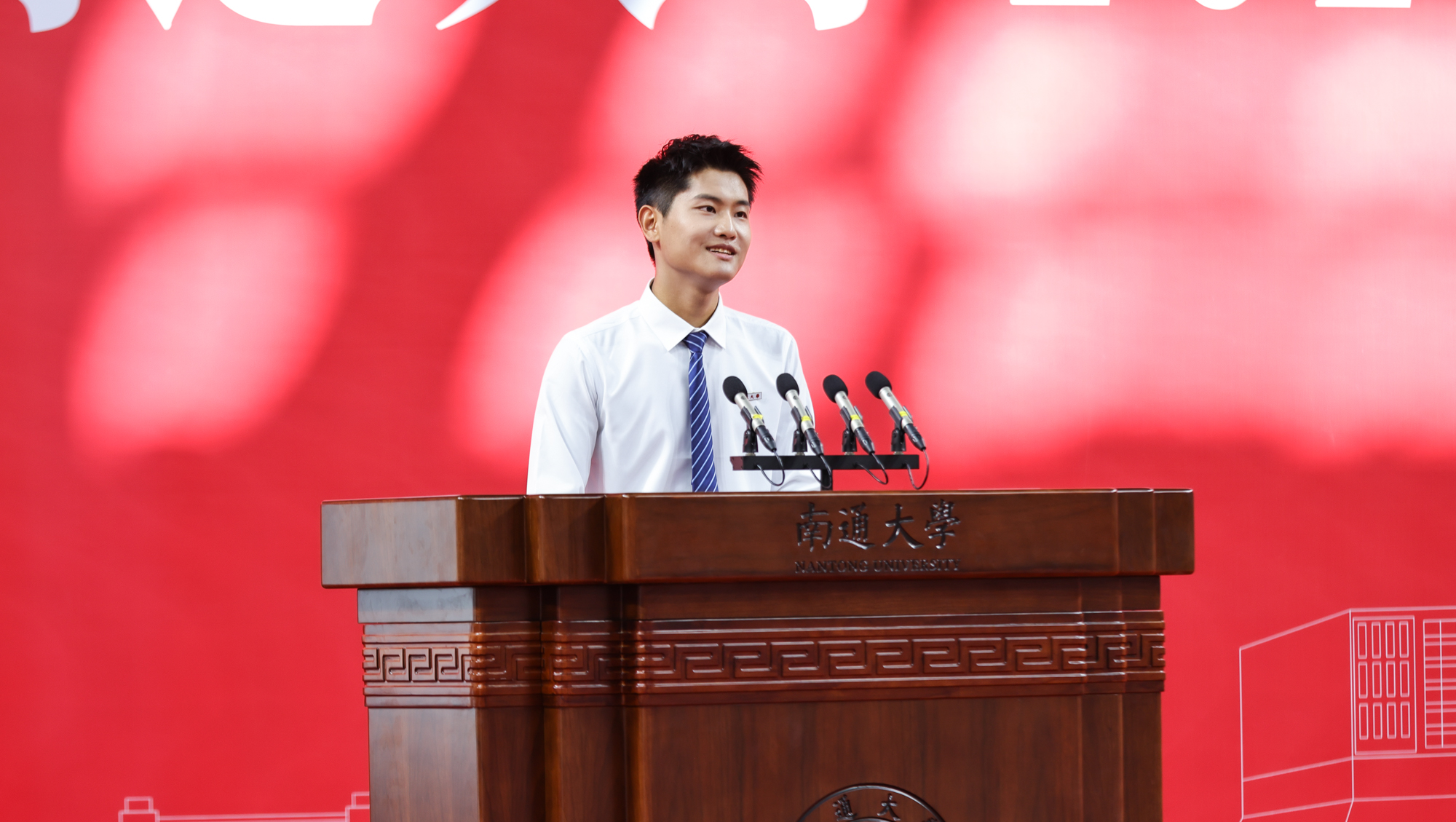 张胜诚作为老生代表在学校2025级本科生开学典礼上发言