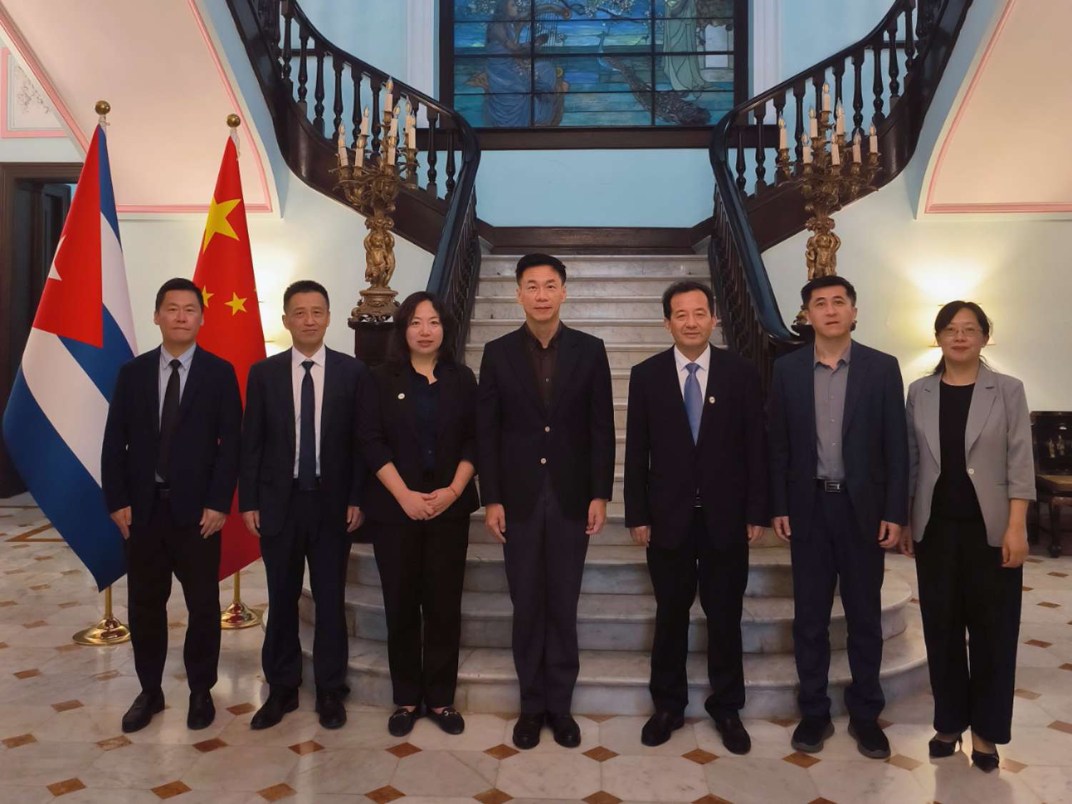 在古巴期间,代表团专程拜会了中国驻古巴大使馆,与华昕大使亲切会面交流。王卫东详细介绍了我校的办学历史、学科特色、国际化发展战略,以及此次与哈瓦那大学等古巴高校达成合作意向的具体进展。华昕大使结合中古教育合作的前景,就如何精准对接需求、建立长效机制、深化人文交流提出建设性意见,表示中国驻古巴大使馆将坚定支持南通大学与古巴高校在共同优势领域开展实质性合作。
