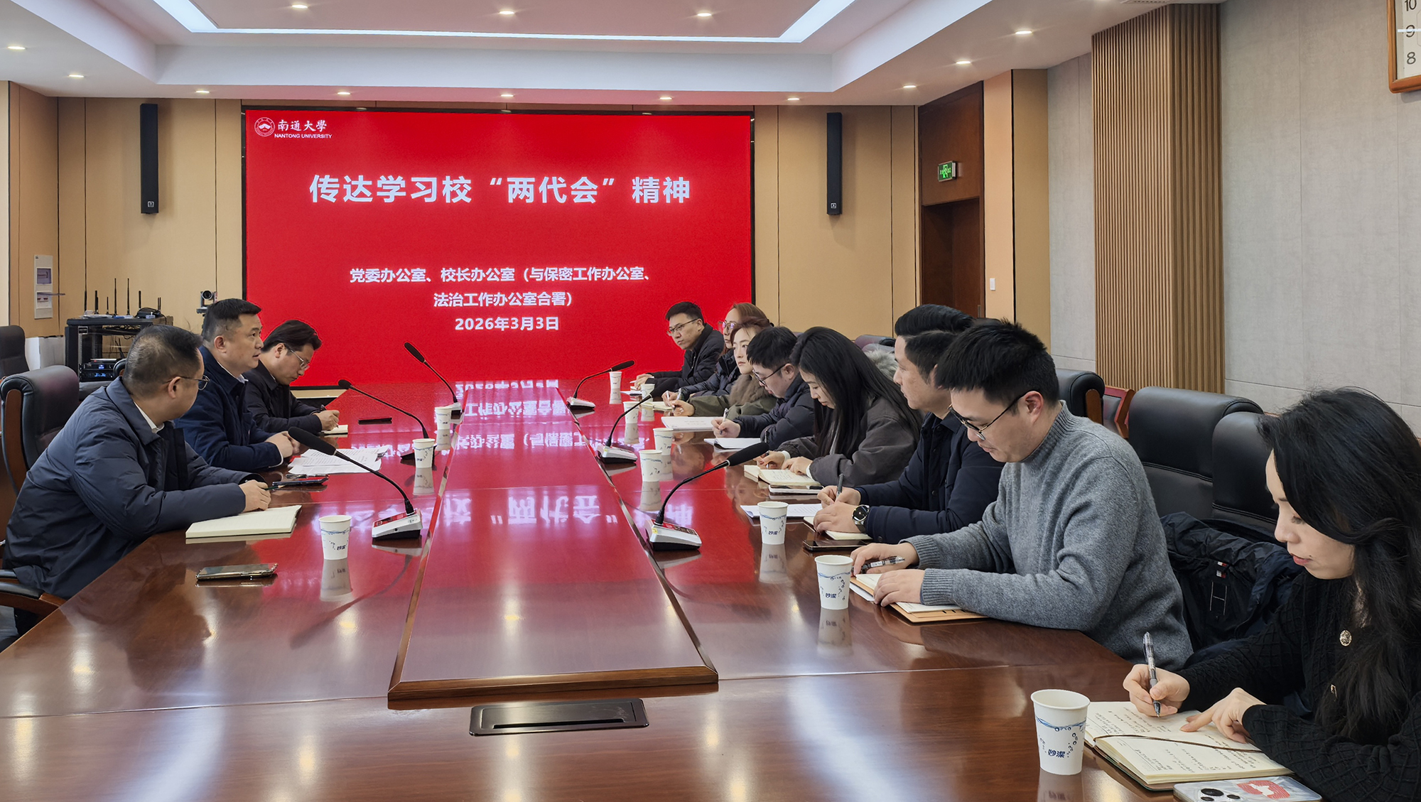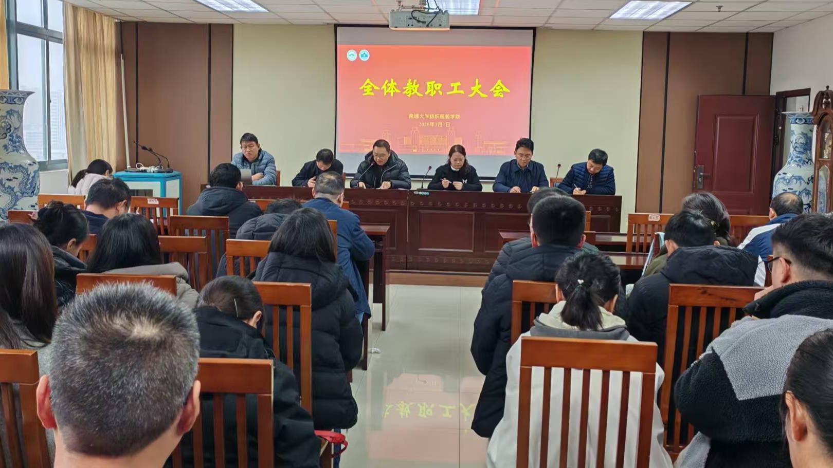 学院院长张伟主持会议,传达了学校“两代会”精神,带领大家共同学习了校党委书记杨宇民作的题为《凝心聚力谋发展 实干笃行开新局》的讲话精神和校长王建浦作的题为《真抓实干 奋发进取 加快推进特色鲜明的国内一流大学建设》的工作报告精神,校财务工作报告,以及关于《南通大学“十五五”事业发展规划》(审议稿)的起草说明、关于《南通大学第三轮聘期岗位绩效定档工作方案》修订工作的说明。他指出,学校在“十四五”期间取得了多项突破性、标志性成果,为“十五五”开局起步奠定了坚实基础、积蓄了强劲势能。他要求学院全体教职工认真领会会议精神,乘势而上、聚力攻坚,围绕博士点申报等重点工作,一步一个脚印把发展蓝图变成现实图景,努力实现“十五五”良好开局,为学校高质量发展贡献纺织力量。