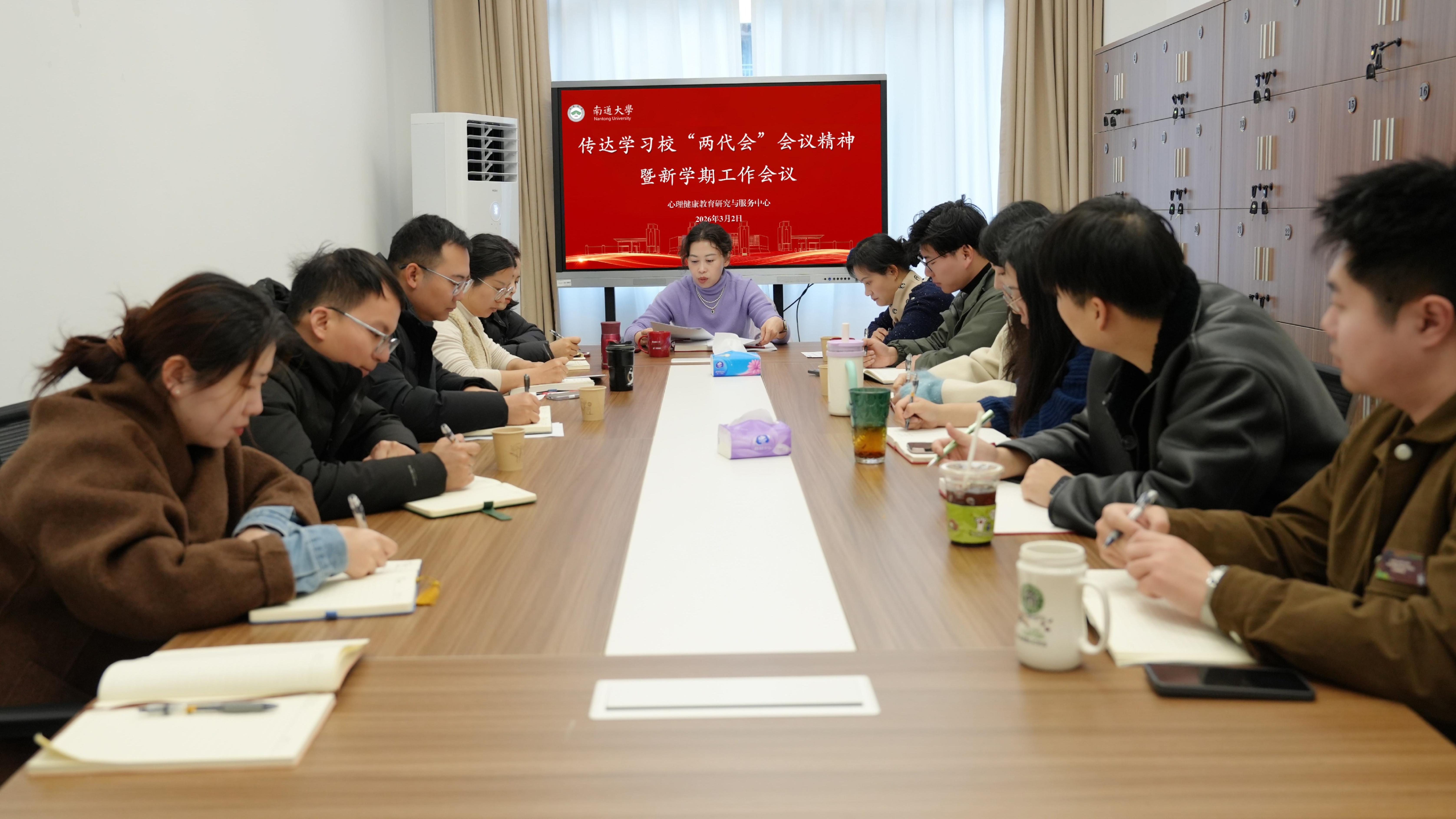 3月2日上午,心理健康教育研究与服务中心召开新学期工作会议,传达学习校第五届教职工代表大会、第四届工会会员代表大会第二次会议精神,部署新学期心理健康教育各项工作。