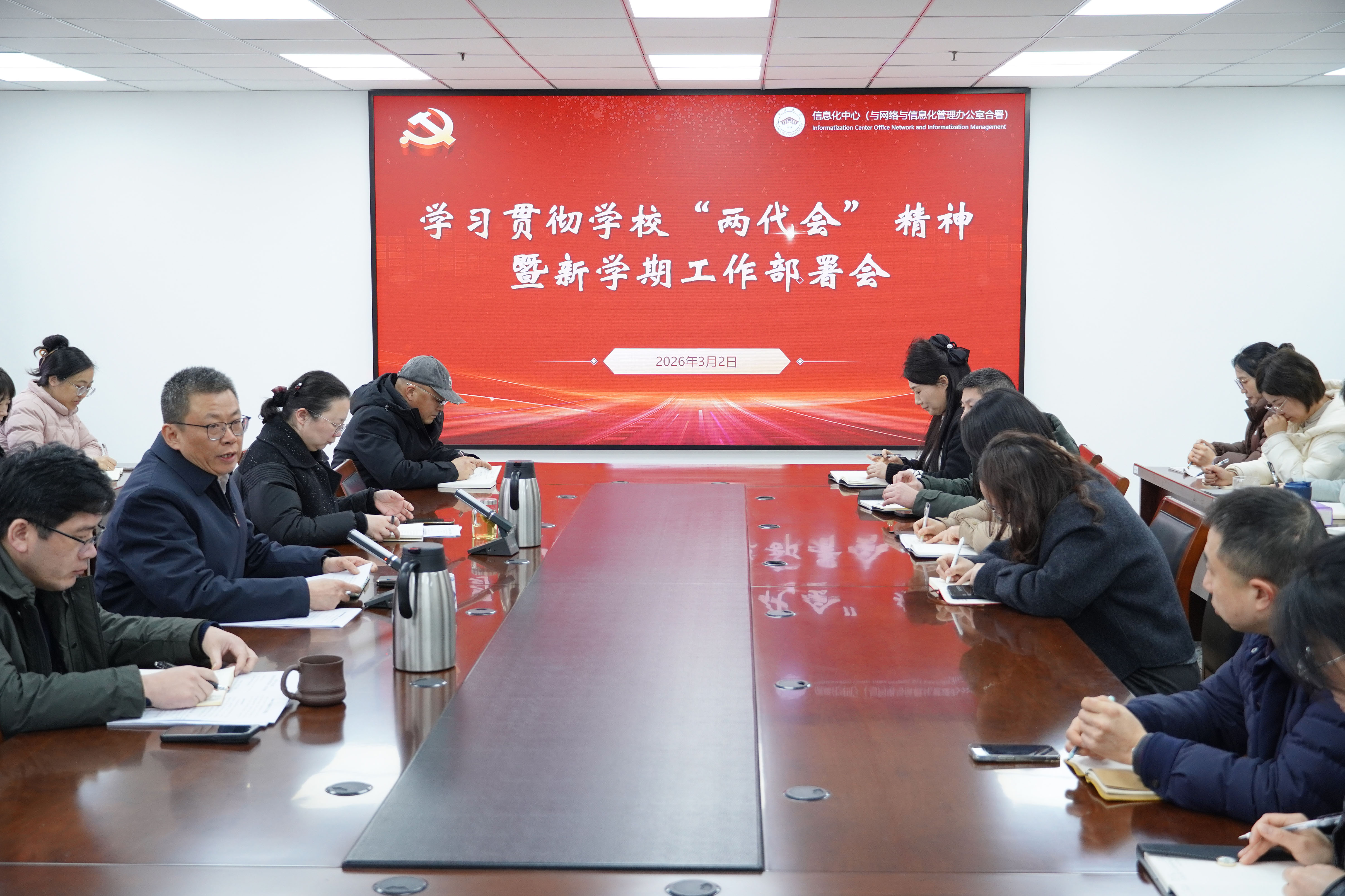 3月2日下午,信息化中心召开全体教职工会议,传达学习学校第五届教职工代表大会、第四届工会会员代表大会第二次会议精神,研究部署2026年重点工作。