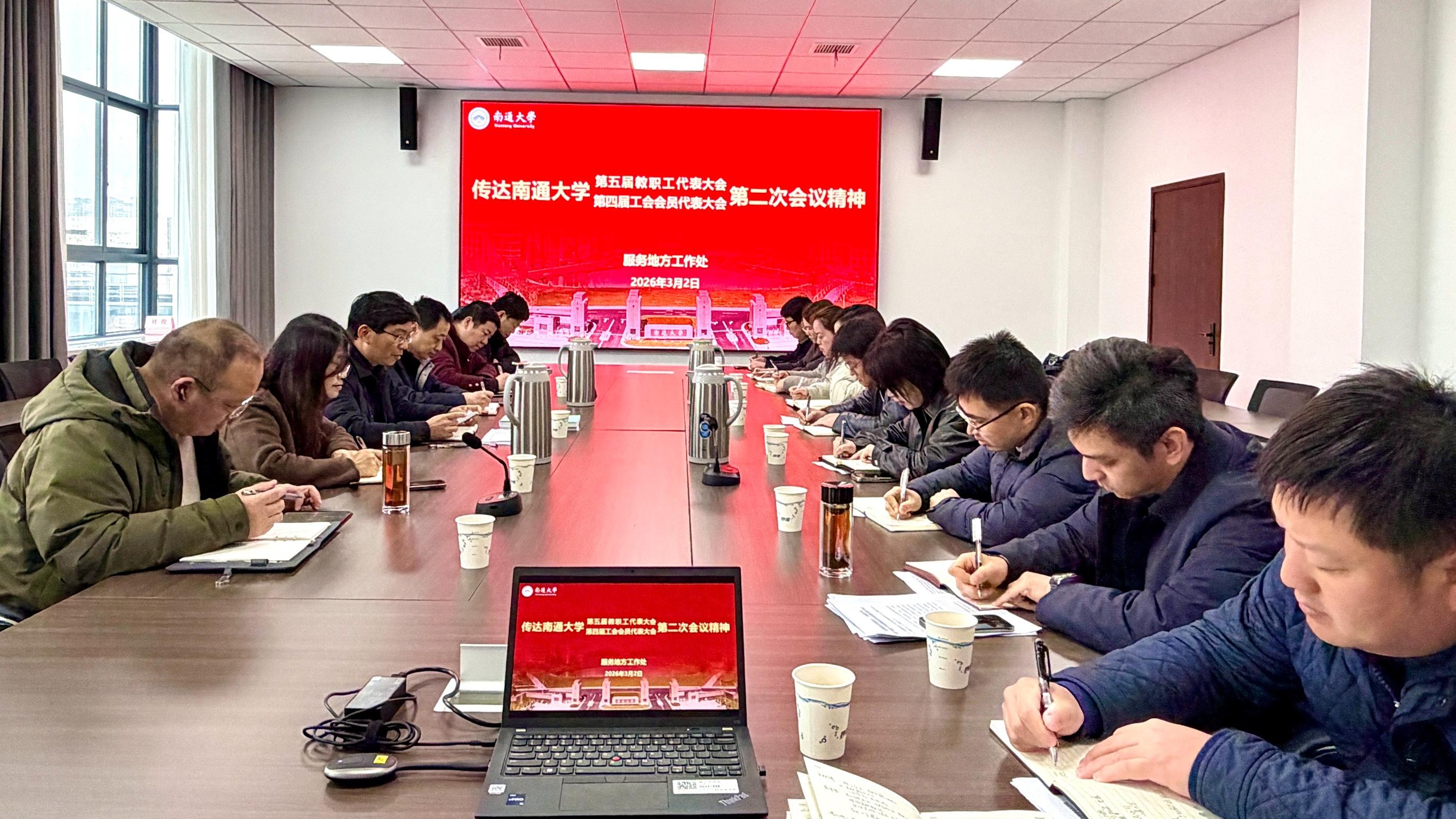 3月2日上午,服务地方工作处召开专题会议,深入学习贯彻学校第五届教职工代表大会、第四届工会会员代表大会第二次会议精神,并部署新学期重点工作。