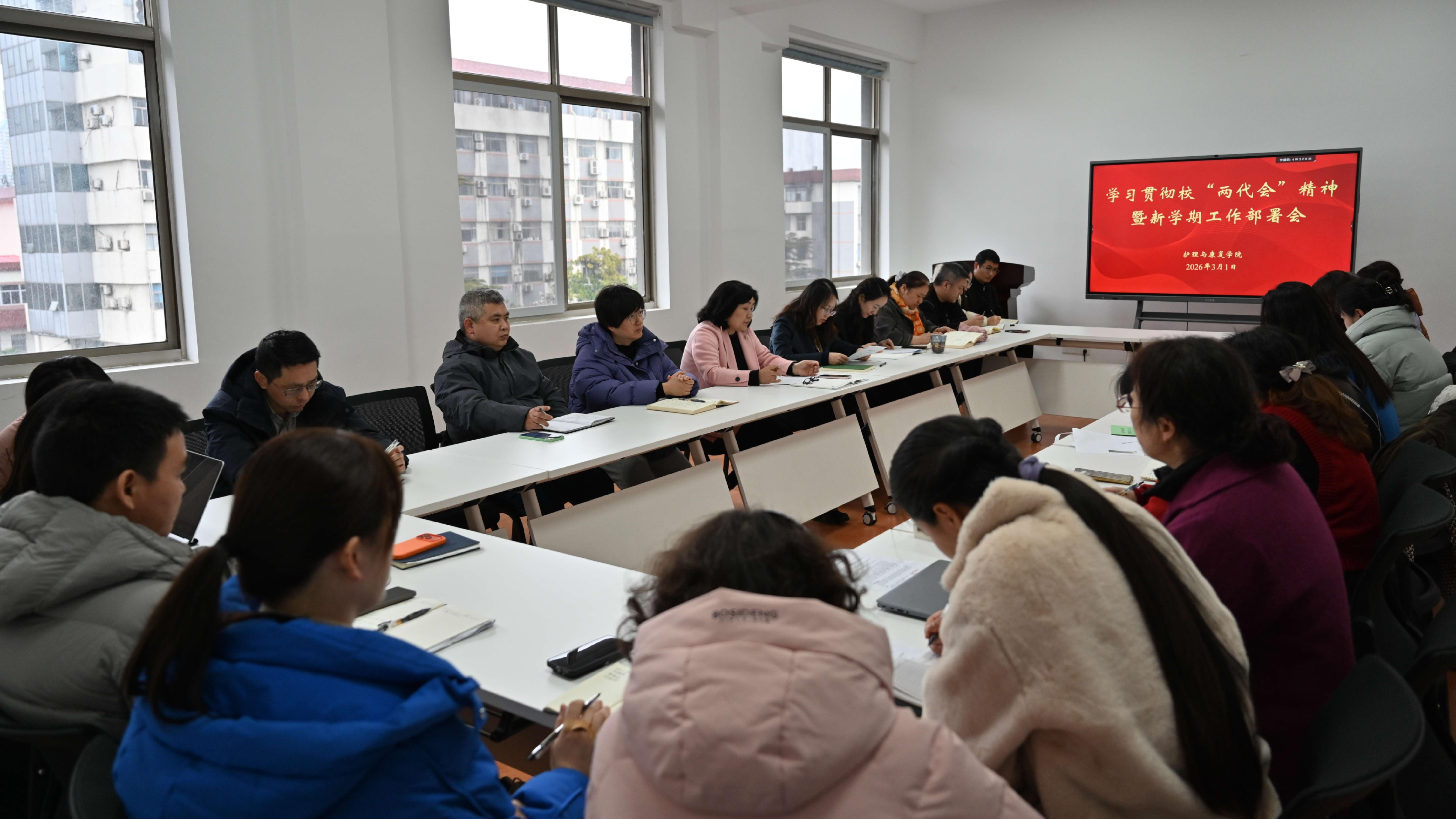 3月1日,护理与康复学院召开专题会议,传达学习学校第五届教职工代表大会、第四届工会会员代表大会第二次会议精神,部署新学期重点工作。