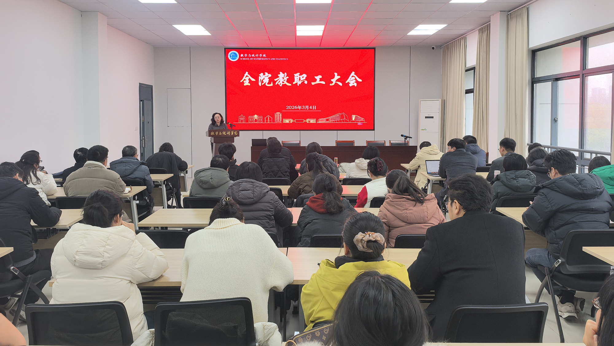 3月4日下午,数学与统计学院召开新学期全体教职工大会,传达学习校第五届教职工代表大会、第四届工会会员代表大会第二次会议精神,总结2025年工作,部署2026年重点任务。