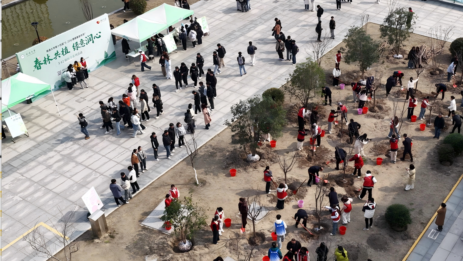 春林共植,绿意润心。3月12日下午,在第48个植树节到来之际,我校植树节系列活动在啬园校区41号楼东侧广场举行。校领导杨宇民、王建浦、王卫东、陆俊杰、施佺、周振修、徐骏、华亮,校党委常委吴如高与师生一同进行植树。