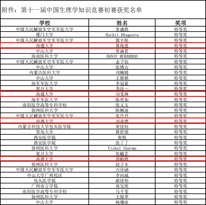 近日,第十一届中国生理学知识竞赛(英文)个人笔试成绩正式揭晓。我校医学院本科生黄俊恩、刘雯琳、刘承烨、周暄轶四位同学凭借扎实的专业功底脱颖而出,以全国前1%的优异成绩斩获特等奖,其中黄俊恩位列全国第4名,再次刷新我校在该赛事中的最佳成绩。