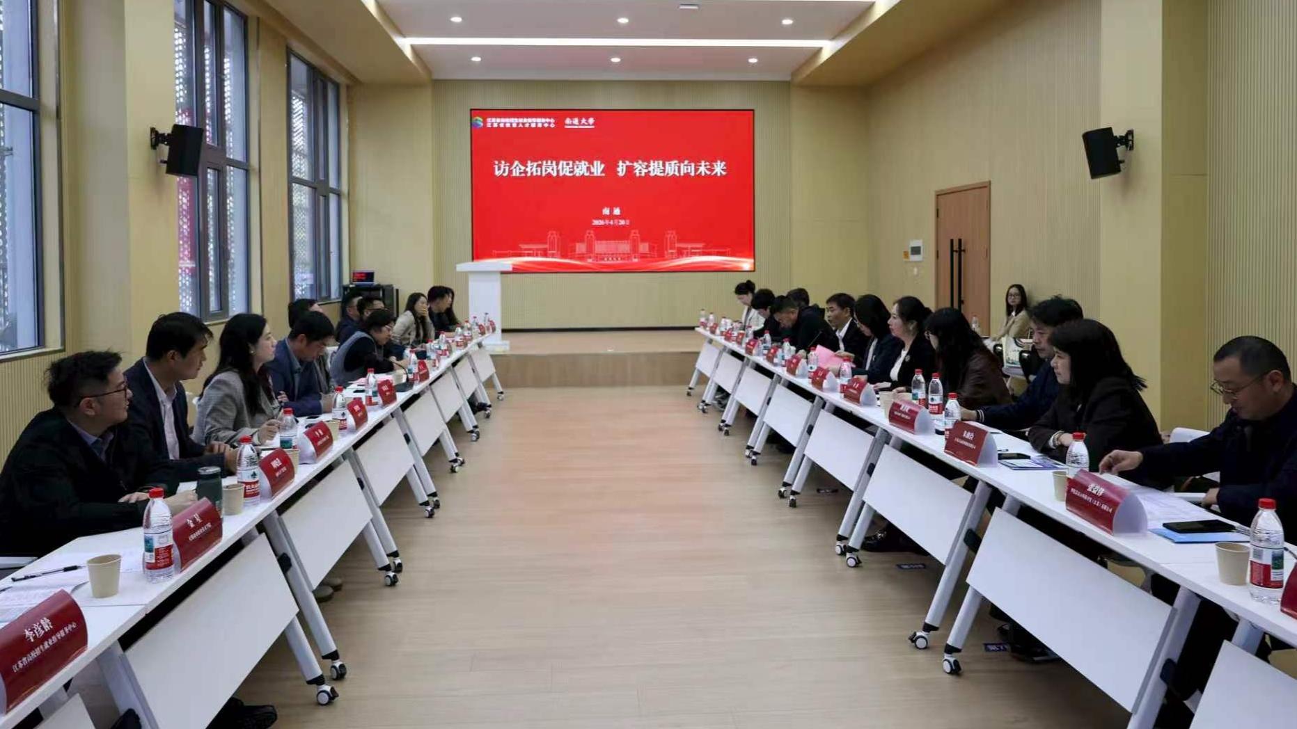 4月20日,江苏省高校招生就业指导服务中心在我校举办“双高协同促就业 扩容提质向未来”校企座谈会暨访企拓岗活动。全省11所高校就业工作负责人、8家重点企业代表参加活动。