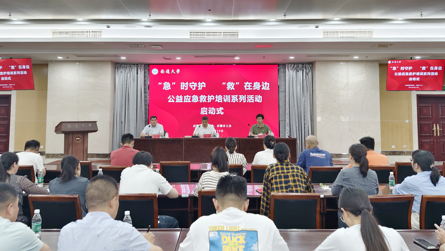 6月14日下午,后勤保障部举办“‘急’时守护 ‘救’在身边”公益应急救护培训系列活动启动式。后勤保障部部长徐建在仪式上讲话。他指出,在校园内实施急救教育行动、开展急救教育培训是保障师生生命安全和提升社会急救能力的有效抓手,是贯彻落实中共中央、国务院印发的《“健康中国 2030”规划纲要》的重要举措。后勤保障部开展公益应急救护培训系列活动,目的不仅在于传播“人人学急救”的核心理念,普及应急救护知识和技能,更是希望通过这一系列活动,号召师生积极践行社会主义核心价值观,形成共同关注生命安全的良好风尚,营造“急救为人人”的校园文化氛围,携手共建一个安全稳定、和谐互助、友善共融的校园环境。他对此次公益应急救护培训系列活动提出三点要求。一是提高政治站位,强化组织领导。二是牢记初心使命,注重安全保障。三是立足学用结合,确保取得实效。他希望,全体参训人员能够珍惜这次培训机会,认真学习,熟练掌握各项救护技能和操作要点,将所学知识应用到实际工作和生活中,成为应急救护知识的“传播者”和师生生命健康的“守护人”。后勤保障部党委书记徐惠忠宣布公益应急救护培训系列活动正式启动。后勤保障部副部长王东主持启动式。本次