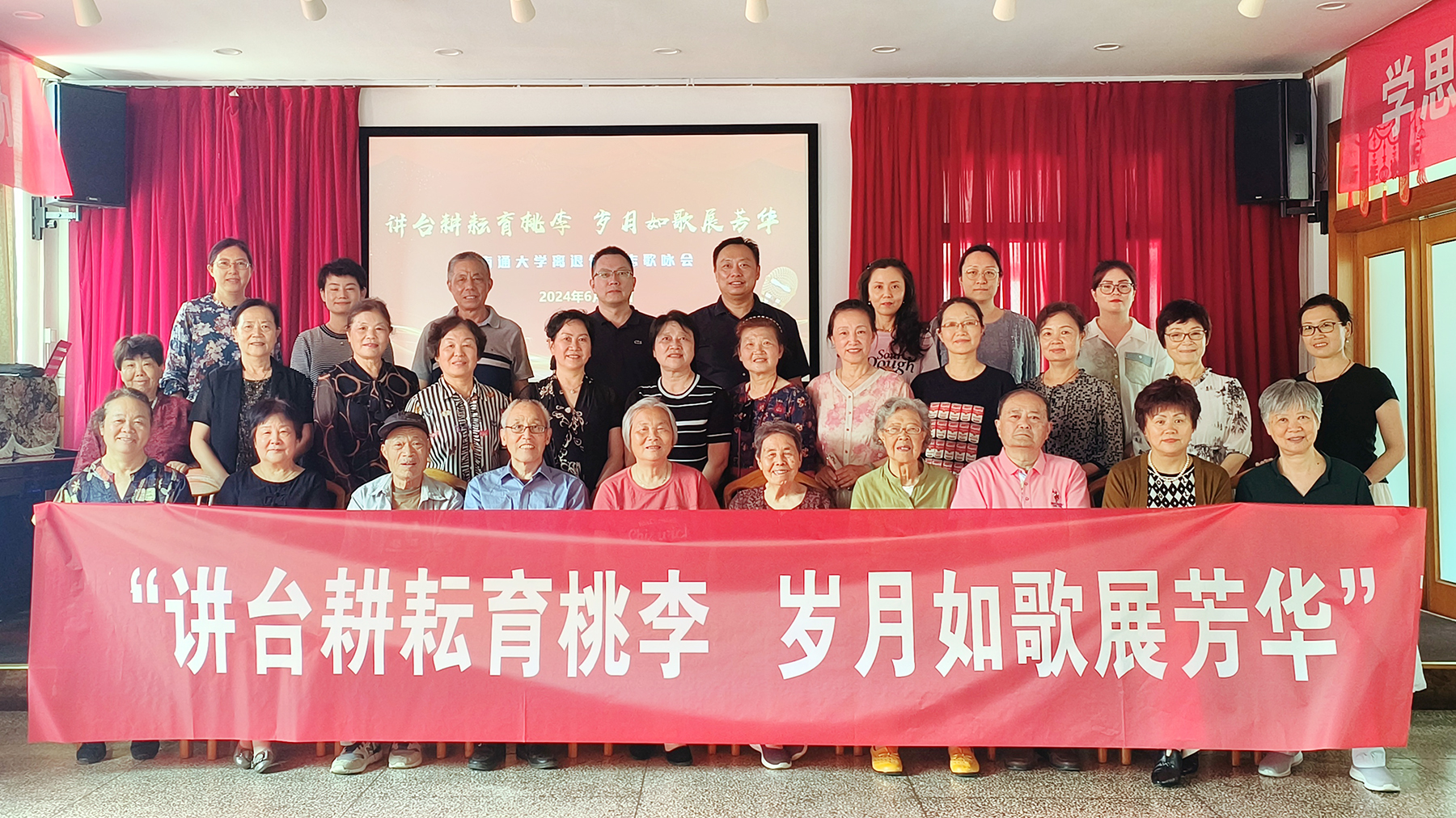 6月13日下午,离退休人员工作处开展“讲台耕耘育桃李 岁月如歌展芳华”离退休同志歌咏会活动。离退休党工委书记、离退休人员工作处处长姚春雷参加活动并致辞。他感谢离退休同志们对学校发展的关心和支持。他指出,今年是中华人民共和国成立75周年,也是学校合并组建20周年,本次活动旨在贯彻落实学校第四次党代会精神,展示老同志们永远跟党走的政治本色,推动“名城名校”融合发展和建设特色鲜明的国内一流大学凝聚银发力量,充分展示离退休人员的魅力风采,讴歌新时代的美好生活。他表示,离退休人员工作处将一如既往地用心用情精准服务,着力提升老同志们的幸福指数,还将继续举办各类适合老同志的文体活动,让更多老同志参与其中,老有所学、老有所乐。此次歌咏会共有20多位离退休同志报名参加,其中年龄最大的已86岁高龄,活动表演形式有独唱、表演唱、小组唱、舞蹈、脱口秀等。随着音乐响起,老同志们精神抖擞,以饱满的热情高歌一首首主题鲜明、催人奋进的歌曲,台下鼓掌声、欢呼声不断。端木艺老师演唱的《绣红旗》,抒发了革命者对党、对祖国的无限热爱;刘能驯老师演唱的《天路》表达了广大藏族人民对青藏铁路通车以后无比的喜悦以及对党和政府的感激之