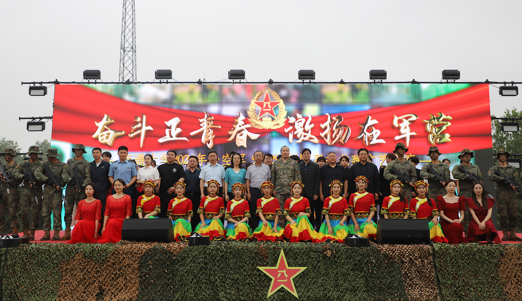 为推进落实“时代新人铸魂工程”,引导和激发大学生增强国防观念,厚植家国情怀,6月11日,我校师生赴空军94729部队开展双拥共建文艺汇演。校党委常委、人民武装部部长朱城出席活动。汇演以“奋斗正青春,激扬在军营”为主题。充满激情的舞蹈《欢乐火把节》点燃了汇演现场;部队带来的科目展示《刺杀操》以雷厉风行的动作、挺拔傲然的风骨,将现场气氛推向了高潮;汇演在全体共唱《强军战歌》中画上圆满句号。本次文艺汇演由校人武部主办,校团委、艺术学院、杏林学院承办,充分展现了我校拥军爱军的优良传统,为实现强国梦、强军梦注入不竭的青春动力。南通市退役军人事务局副局长顾羽,空军94729部队教导员卓鑫,南通市崇川区任港街道人民武装部副部长王建出席活动。部队200余人现场观看演出。(张青国)