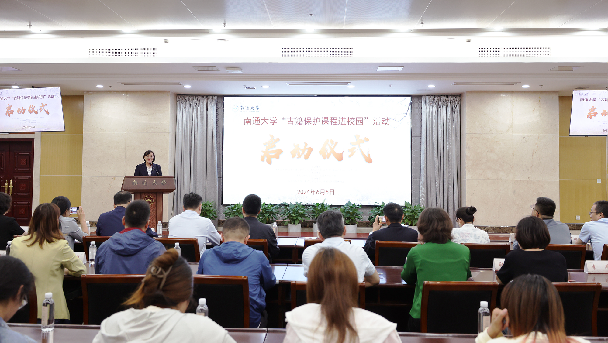 我校启动“古籍保护课程进校园”活动6月5日,我校联合国家古籍保护中心国家图书馆、江苏省古籍保护中心南京图书馆举办全国“古籍保护课程进校园”活动。副校长陈玉娟、南京图书馆副馆长许建业出席活动启动仪式并讲话。中国屈原学会副会长周建忠作题为“《楚辞》版本的选择与整理”专题讲座。校党委常委、宣传部部长陶锋出席活动。陈玉娟在讲话中指出,古籍承载着丰厚的历史和文化内涵,做好新时代古籍保护、传承中华优秀传统文化是高校肩负的重要职责。学校将在国家、省古籍保护中心的关心指导下,以此次“古籍保护课程进校园”活动为新起点,进一步普及古籍保护知识,增强新时代大学生古籍保护技能;充分发挥学校文化资源优势,宣传推广古籍保护理念,传承创新古籍修复技艺,为古籍保护事业贡献高校力量。许建业表示,此次“古籍保护课程进校园”活动的开展,是对习近平总书记关于中华优秀传统文化创造性转化和创新性发展系列重要论述的具体落实。江苏省将通过联合省内15所高校共同开展“古籍保护课程进校园”活动,充分发挥江苏科教文化丰富的资源、人才优势,在大学生中普及古籍保护知识,培养后备力量,让江苏古籍保护事业薪火相传、人才辈出,持续推动江苏文化强省建