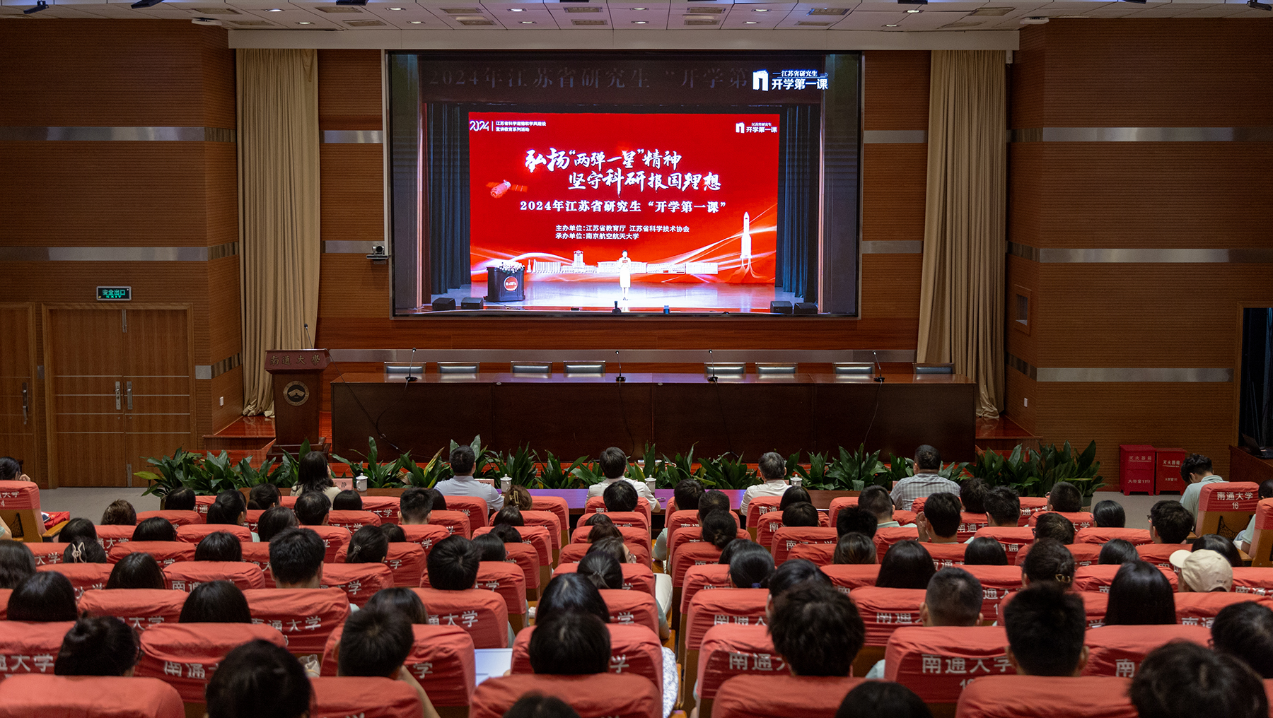 9月20日,省教育厅、省科协联合举办2024年江苏省研究生“开学第一课”。我校在啬园校区设分会场,在26个研究生培养单位设集中观看点,组织全校6000余名研究生和研究生教育管理工作者集中观看。校党委常委、副校长施佺出席分会场活动。会场省教育厅一级巡视员袁靖宇出席“开学第一课”并讲话。他指出,党的二十届三中全会擘画了进一步全面深化改革、推进中国式现代化的宏伟蓝图,研究生身处一个最富有希望、最富有挑战的时代。他勉励研究生要厚植热爱祖国、无私奉献的家国情怀,要锤炼自力更生、艰苦奋斗的坚毅品格,要赓续大力协同、勇于登攀的优良传统,自觉肩负起江苏研究生的历史使命,不