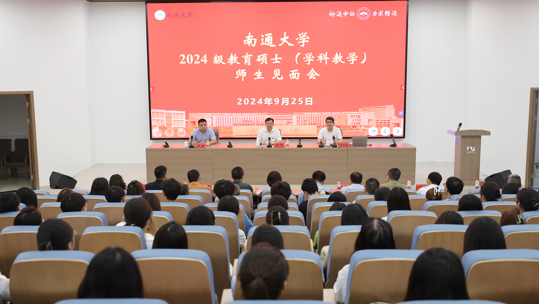 教师教育学院举办2024级教育硕士(学科教学)师生见面会9月25日下午,教师教育学院举行2024级教育硕士(学科教学)师生见面会。校党委常委、副校长施佺出席会议并讲话。施佺向118名教育硕士新生表示热烈的欢迎和诚挚的祝贺。他从张謇先生的教育强国梦讲起,追述了张謇先生创立南通大学的成功教育实践,阐述了南通基础教育与南通大学密不可分的渊源。围绕全国教育大会提出的立德树人根本任务,施佺对全体教育硕士新生提出三点希望,要坚定信念、厚植情怀;要立德树人、守牢底线;要脚踏实地、开拓创新。他鼓励全体研究生认真规划三年学习生涯,以端正的科学态度对待研究,以严谨的逻辑思维总结规律,慎思明辨、求真务实,锲而不舍、